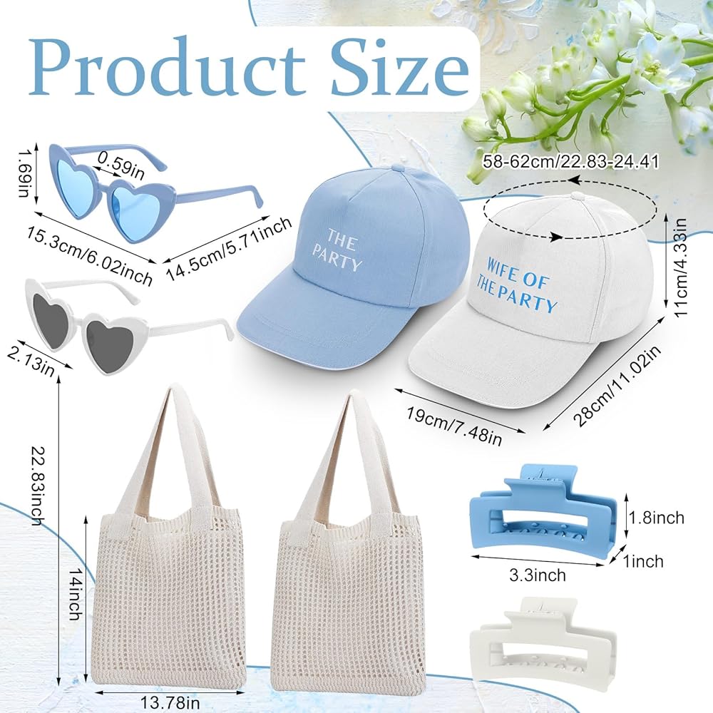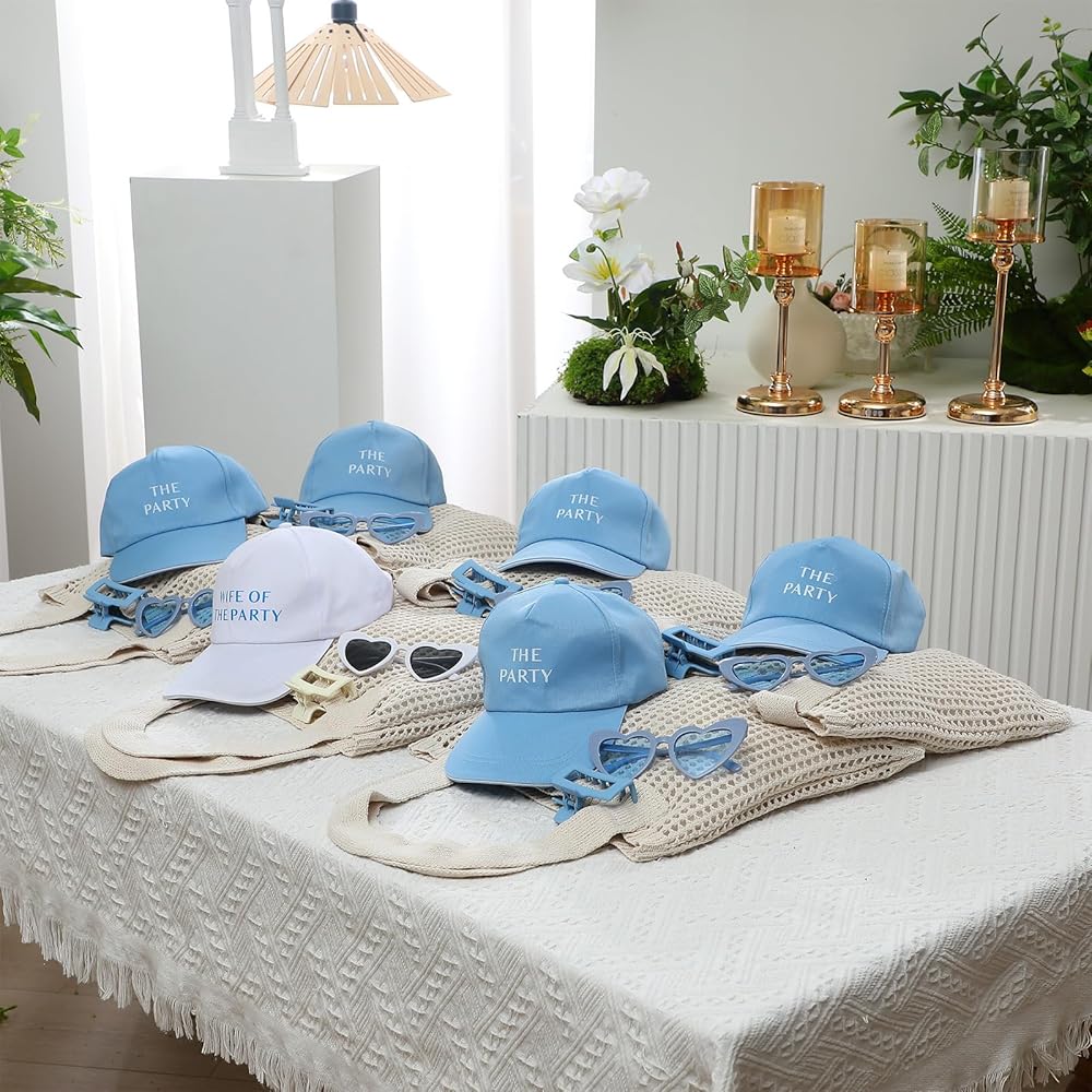 • Bride and Bridesmaids Accessories: celebrate in style with 1 white [ Wife of the Party] hat for the bride and 5 blue [ The Party] hats for bridesmaids, creating a fun and unified look ideal for bachelorette parties, bridal showers, or themed weekends party