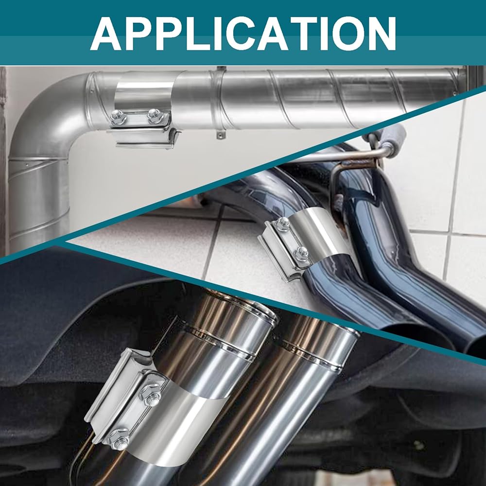 WIDE APPLICATION: The exhaust clamp can be used in many scenarios, such as exhaust pipes, mufflers, catalytic converters etc.
