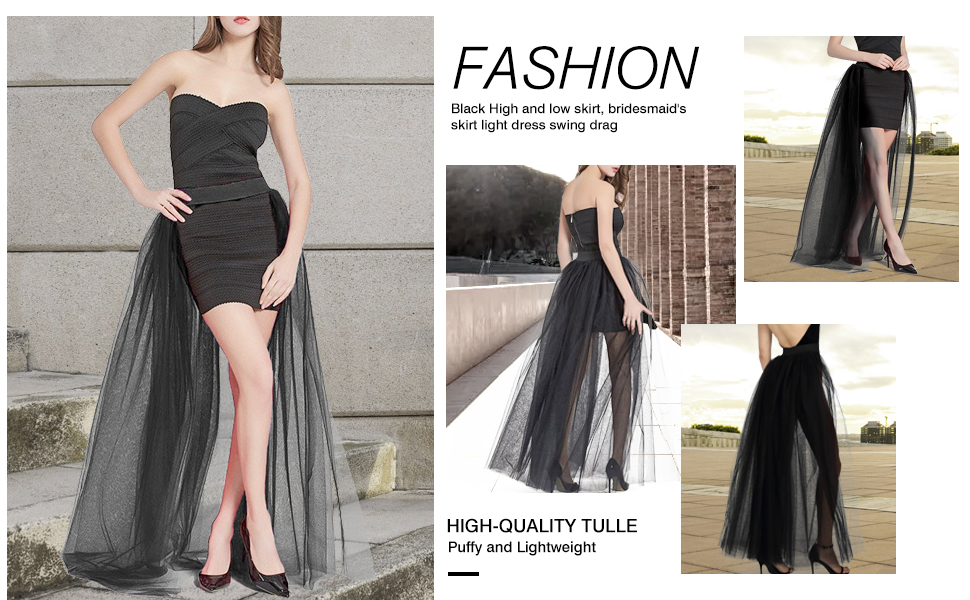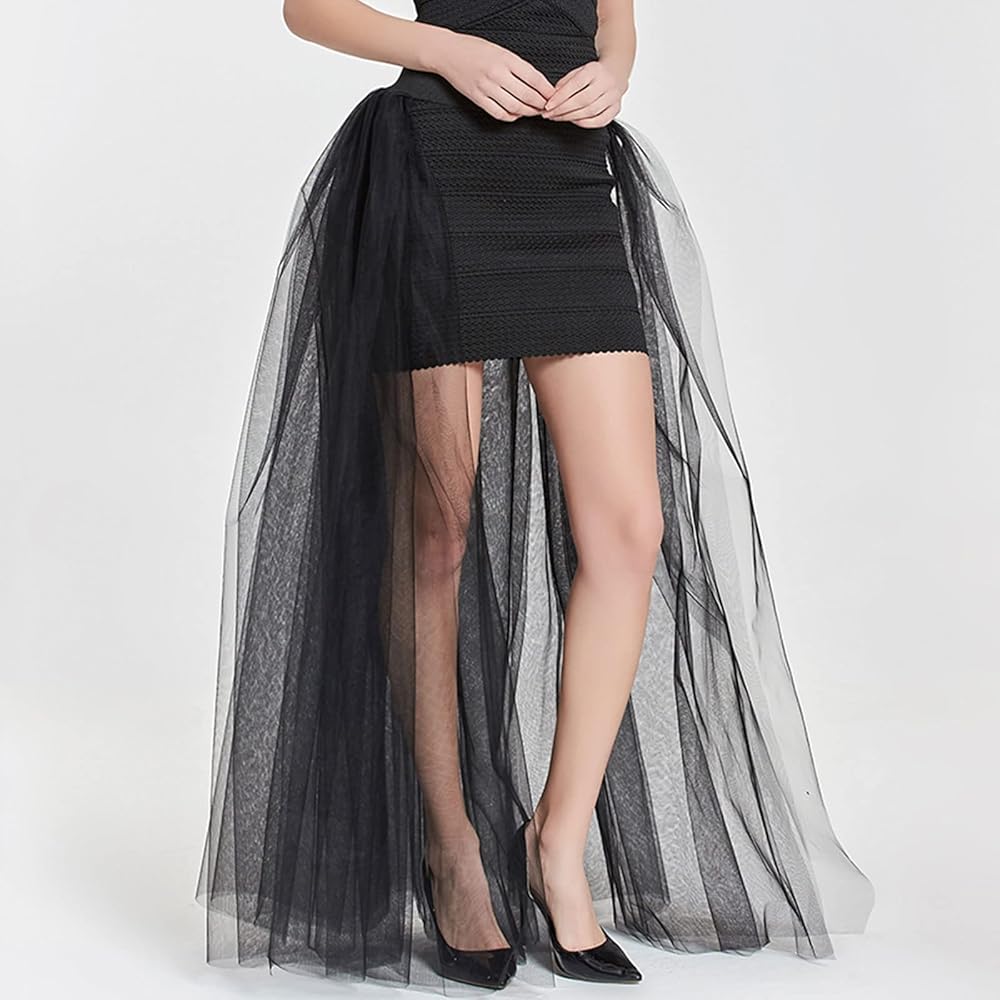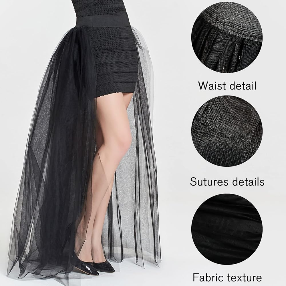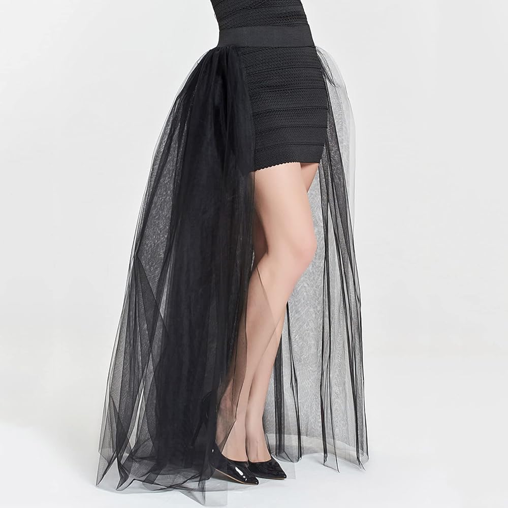 المرأة الزفاف ماكسي تول التنانير انفصال قطار Overskirt تراكب ثوب نسائي طويل الزفاف الأسود