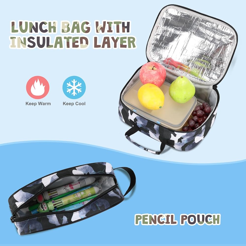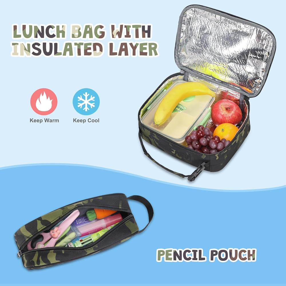 【مجموعة مثالية مجموعة】 ابحث عن جميع احتياجاتك الخلفية إلى المدرسة في حقيبة الظهر المحببة هذه للأولاد ، وحقيبة الغداء ، ومجموعة حقيبة القلم الرصاص. العودة إلى المدرسة مع هذه المجموعة! تستوعب حقيبة الظهر الأولاد التكتيكية أساسيات دراستك ، ويحمل كيس الغداء وجبات لذيذة ، وحافظ قلم القلم الرصاص على الأقلام الخاصة بك. الشعور بالرضا في السفر إلى المدرسة مع حقيبة الظهر الرائعة المصممة والعالية الجودة.