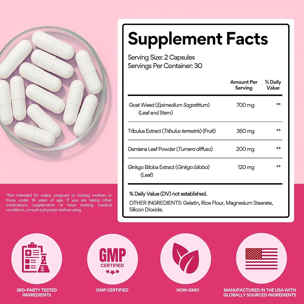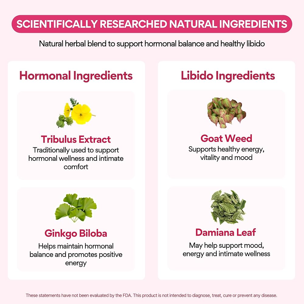 • 🌿 المكونات الطبيعية التي تعمل - معززة الرغبة الجنسية للسيدات هذا يتميز بالأعشاب الماعز الماعز قرنية ، و Tribulus ، و Damiana Leaf لدعم الرغبة الجنسية والمزاج والطاقة - دون الهرمونات الاصطناعية أو المنشطات.