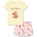 طاقم وأكمام قصيرة في الأعلى. السحب على حزام مرن وجيوب جانبية على شورت PJ للراحة.