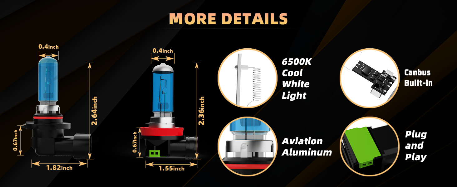 【طول العمر تتجاوز 50000 ساعة】 لمبة الهالوجين ذات الحزمة المنخفضة والعالية هي الفيلوكين مع غاز زينون ، مما يساعد على إبطاء عملية أكسدة التنغستن داخل. بفضل تصميم مقاوم للغبار IP68 ، لا يحترق لمبة الهالوجين العالية/المنخفضة أو تتضرر حتى في الطقس القاسي ، مثل الضباب/المطر/ملبد بالغيوم وما إلى ذلك.