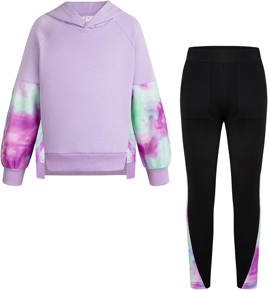 • Girls sweatsuit: girls hoodies sweatshirt is light and comfortable, with novel and diverse patterns, fashionable patchwork design, and elastic wide waistband pants are comfortable and fit well