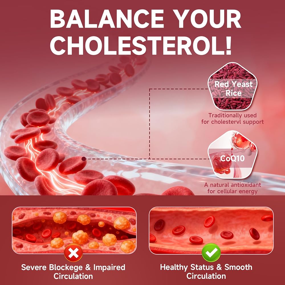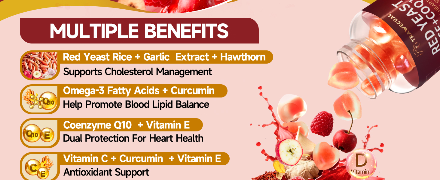 【8 في 1 دعم القلب والأوعية الدموية】 صياغة مع الأرز الخميرة الحمراء و COQ10 ، معززة من الزعرور ، أوميغا 3 ، ومضادات الأكسدة الرئيسية للمساعدة في الحفاظ على الدورة الدموية الصحية ومستويات الدهون.