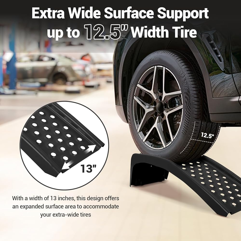 • Optimal Working Dimensions: With dimensions of 35"L × 13"W and an 9" lift height, these auto ramps create ideal working clearance for comprehensive undercarriage access while maintaining a low-profile design.