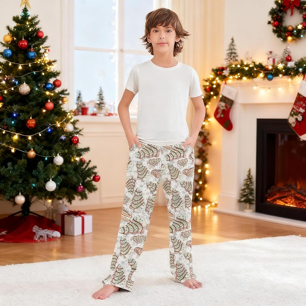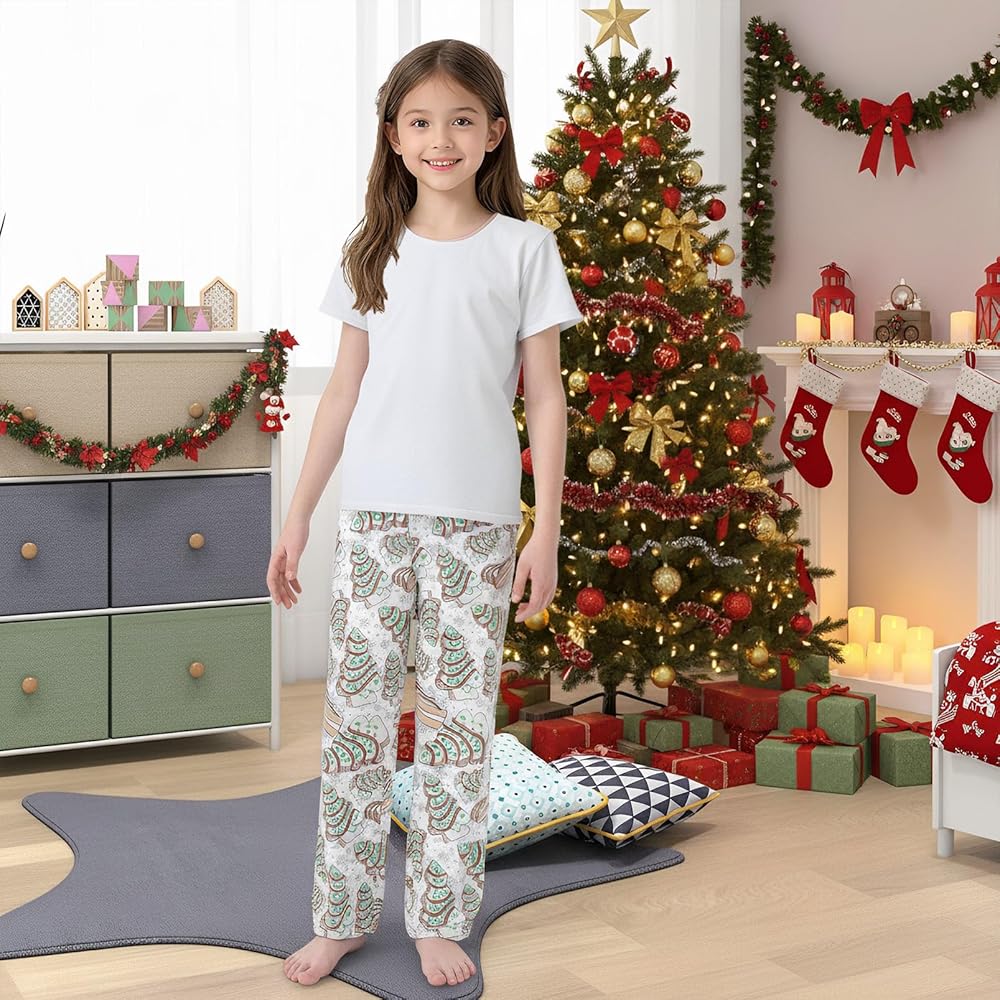 سراويل تتبع الكعك شجرة عيد الميلاد سراويل بيجاما السراويل غير الرسمية عيد الميلاد سروال رياضي لمدة 11-12 سنة