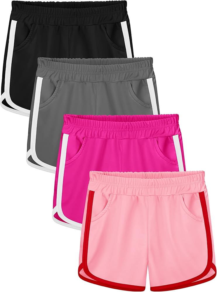 حزمة اقتصادية: استعدي للصيف مع مجموعة من 4 شورتات للجري للفتيات سريعة الجفاف مع جيوب. مع الكثير من الألوان والكمية، يعد شورت الجري للفتيات هذا الحل العملي لاحتياجات خزانة الملابس الصيفية للفتيات، مما يجعله عملية شراء جديرة بالاهتمام.