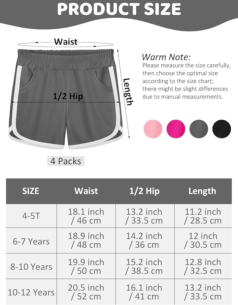 الحجم المناسب: الشورتات النشطة سريعة الجفاف المزودة بجيوب مناسبة لمعظم الفتيات اللاتي تتراوح أعمارهن بين 4 و12 عامًا. يرجى الرجوع إلى جدول المقاسات المقدم قبل إجراء عملية الشراء