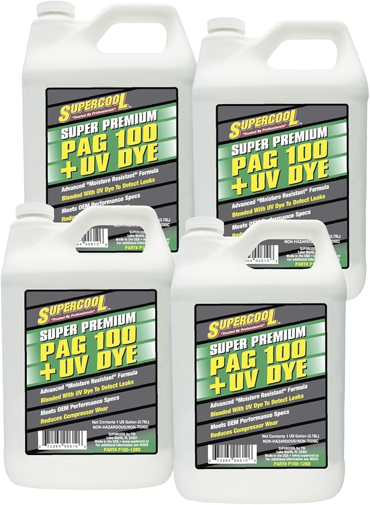 100 Viscosity high performance synthetic PAG for R134a systems provides excellent resistance to moisture Anti-Wear Agents and Friction Modifiers enhance compressor and A/C system efficiency while reducing compressor wear rates which extends compressor life Anti-Oxidants protect system against formation of sludge and other deposits which can shorten compressor life and reduce system efficiency Meets OEM Performance Specifications Contains U/V Dye.