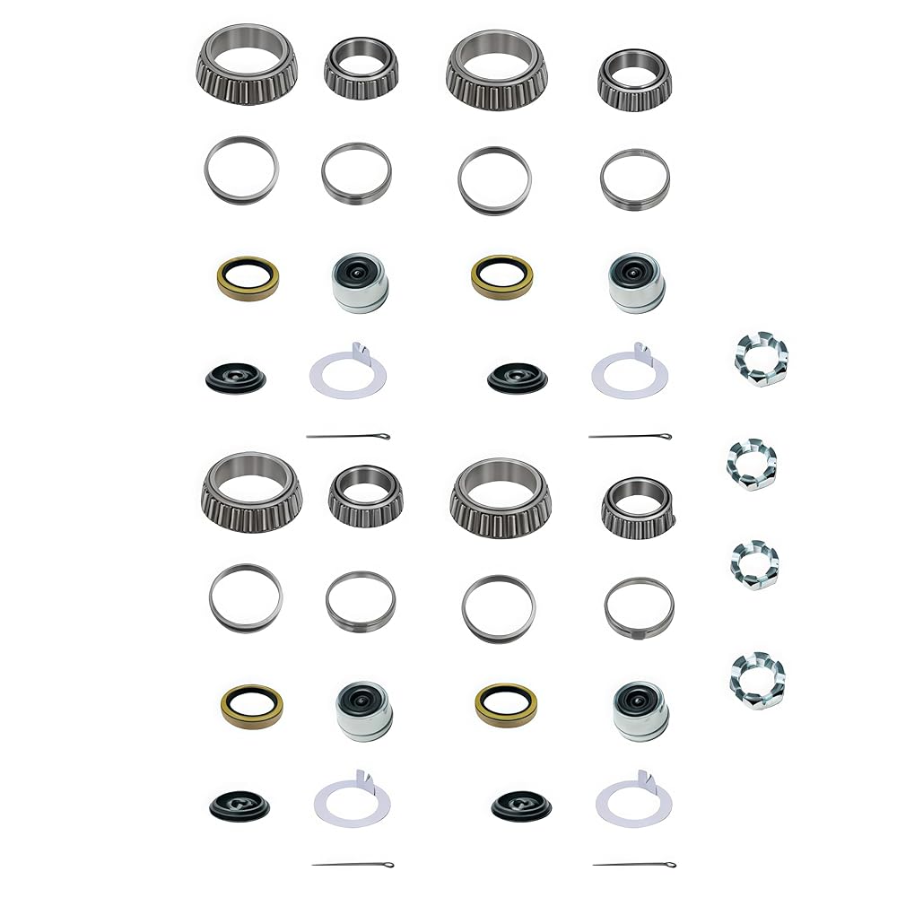 4 مجموعات L68149 L44649 مجموعة محمل المقطورة لمحاور 3500 رطل - تناسب عمود الدوران #84 - تتضمن سباقات L68111/L44610، وختم 10-172، وأغطية الغبار، وغسالات تانغ، ودبابيس كوتر