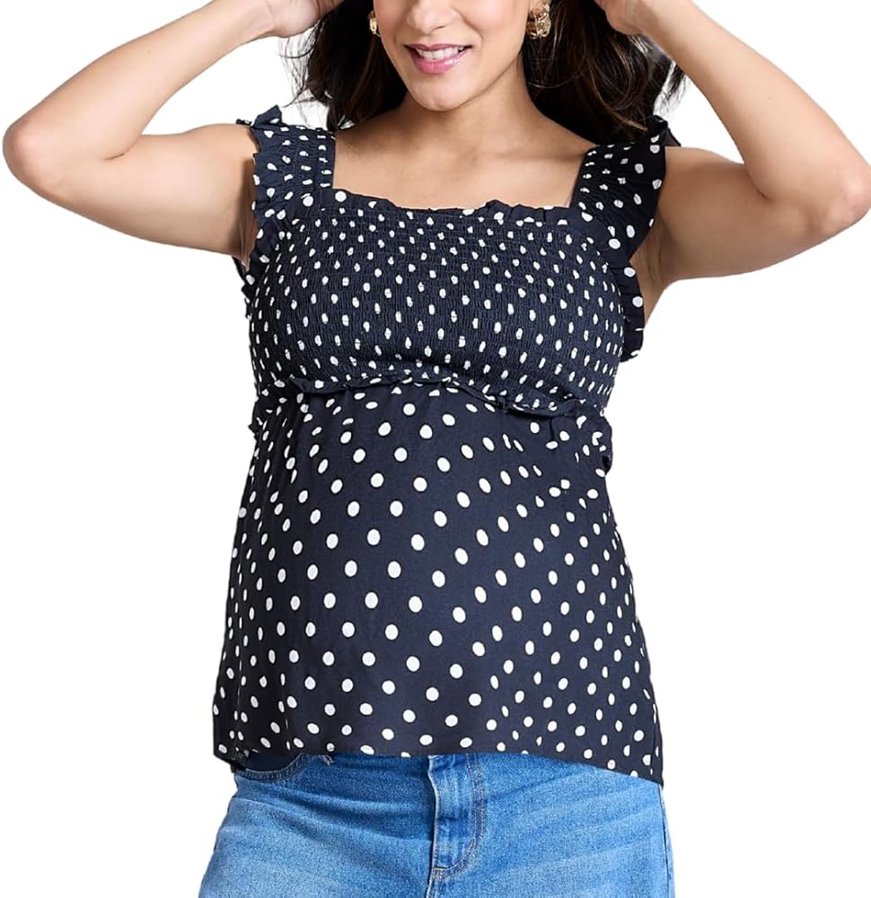 SMOCKED PEPLUM PREGNANCY TANK TOP: A feminine and flattering tank top with a smocked bodice and peplum hem, designed to enhance your pregnancy silhouette.