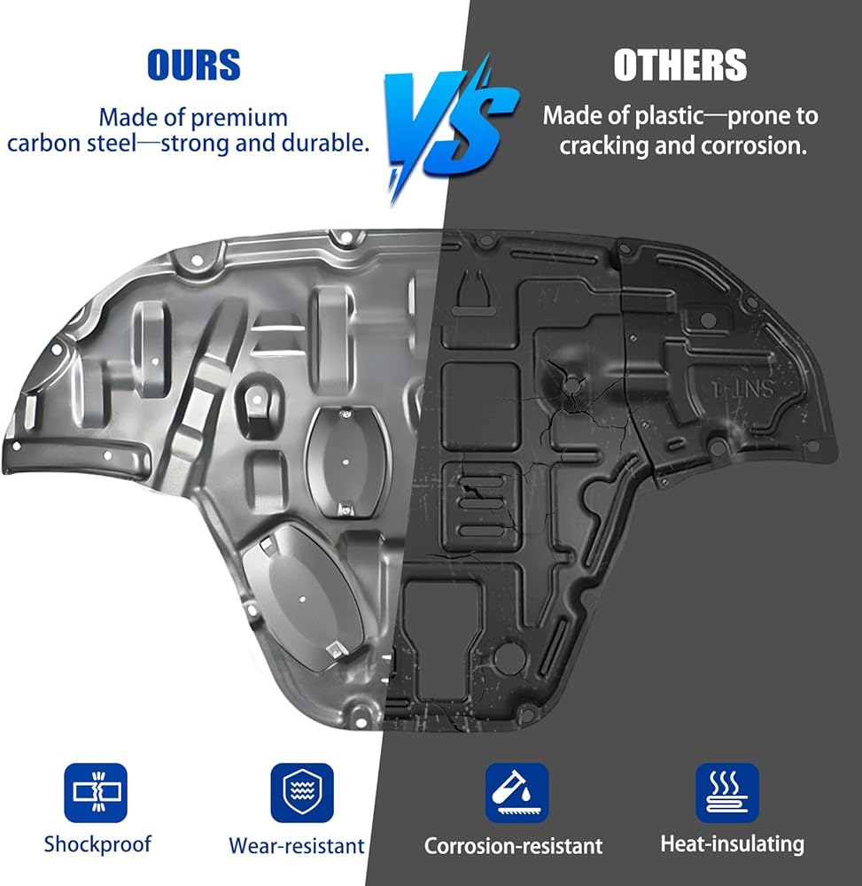 [ترقية]: يعد درع دفقة المحرك الخاص بنا تحت الغطاء أكبر من إصدار المصنع ، مما يوفر تغطية حماية أوسع. إنها ليست مباراة 1: 1 OEM - إنها أكبر وأصعب وأكثر متانة. تم تصميمه لحماية الجانب السفلي من سيارتك بالكامل ، فهو يساعد على حماية المكونات الحرجة من الأضرار المحتملة على الطريق.