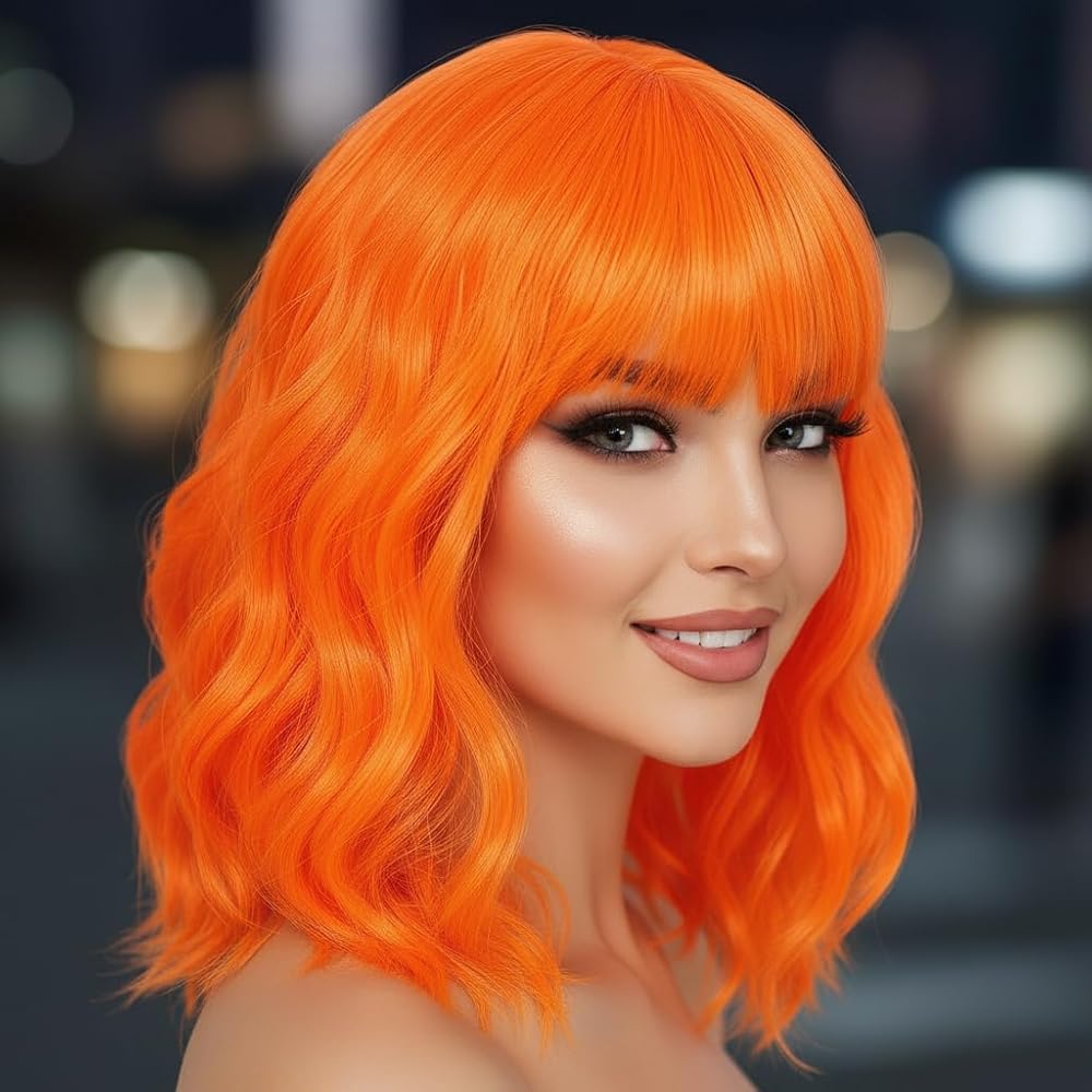 【أسلوب الباروكة الفريدة من نوعه bob wavy】: شعر مستعار بوب قصير مع الانفجارات ، يبدو أكثر طبيعية ورقيقة ، wigs.hair bang: 5 بوصات ، يمكن قطعها وفقًا لوجهك.