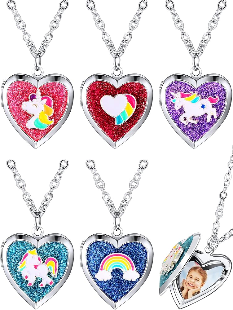 hicarer 5 قطع يونيكورن القلب المنجد قلادة الحيوان حورية البحر قوس قزح القلب تاج قلادة قلادة بريق لطيف فراشة زهرة في القلب سلسلة قلادة مجوهرات للفتيات الفتيان الاطفال عيد ميلاد
