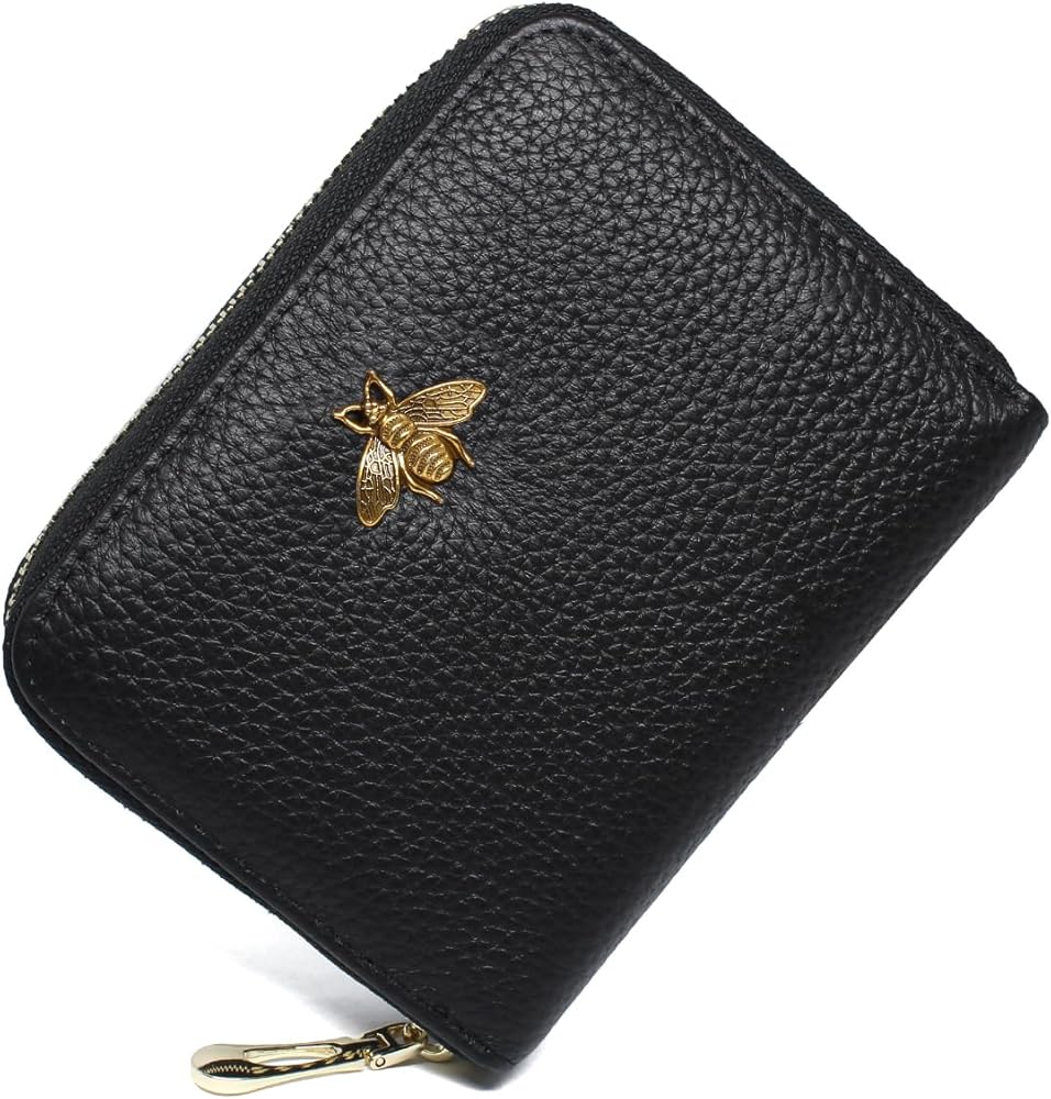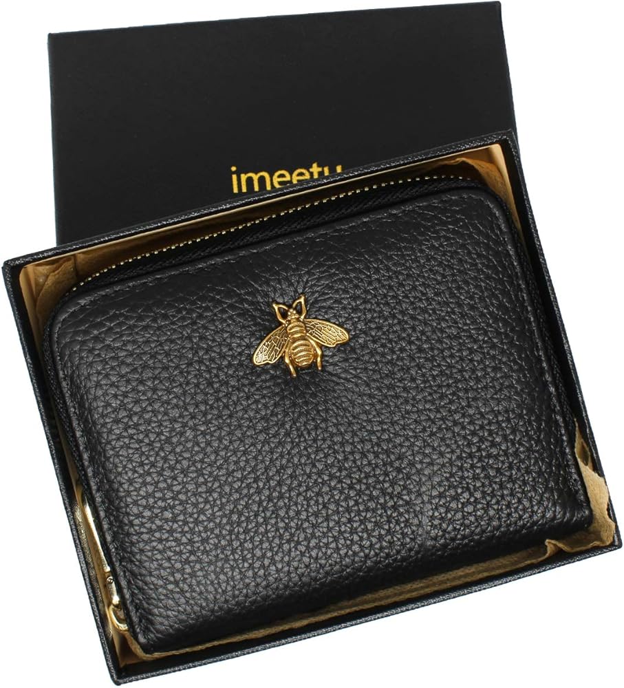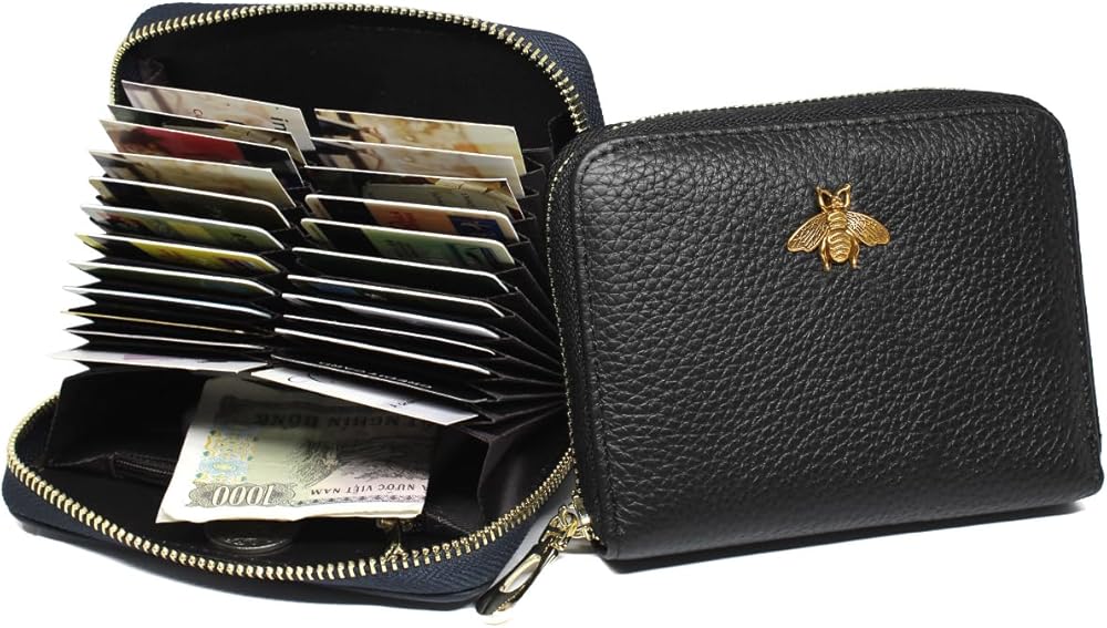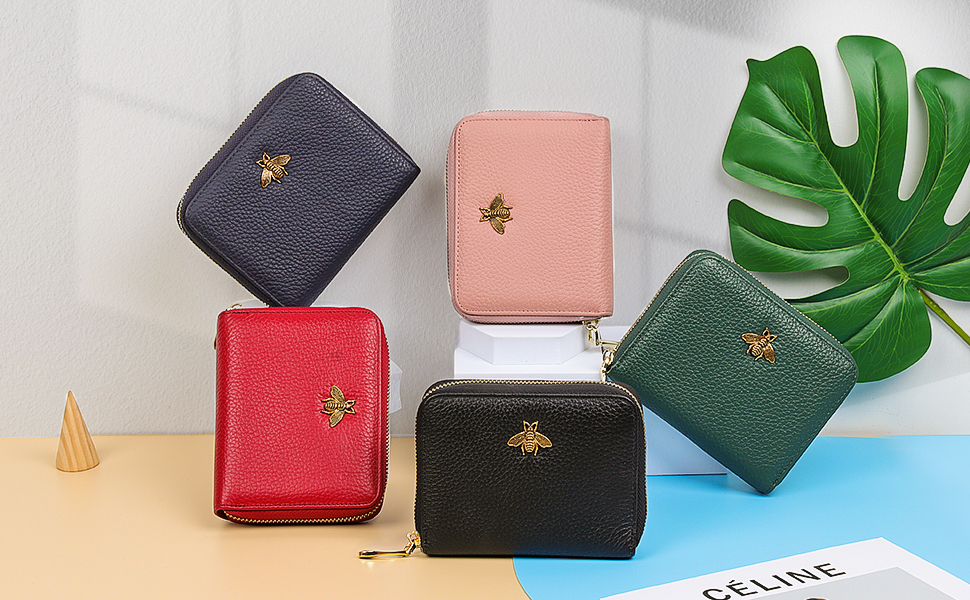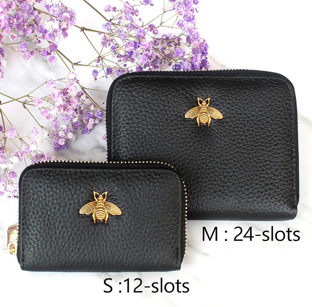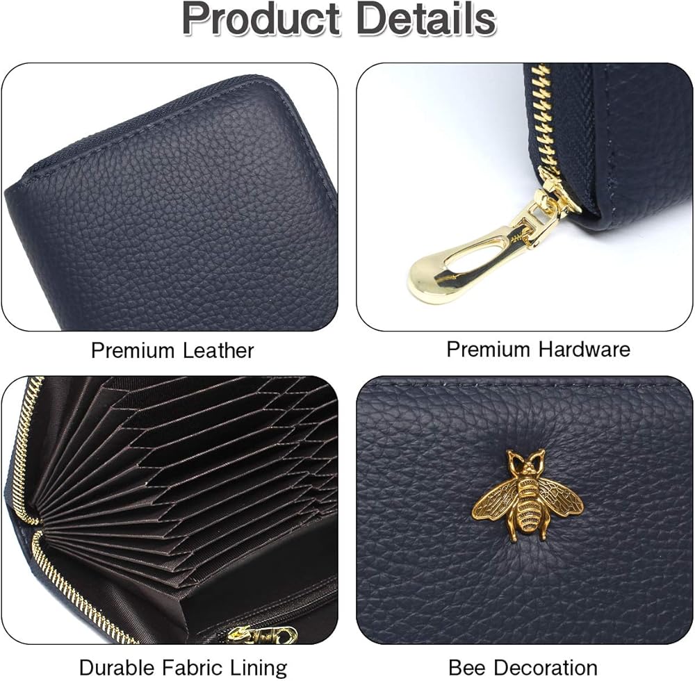• مادة جلدية فاخرة: حامل بطاقة الائتمان مصنوع من جلد أصلي فاخر، ناعم ومتين، ويمنحك شعورًا مدهشًا عندما تمسكه باليد. بفضل السحاب الناعم، يسهل فتح حافظة البطاقات وإغلاقها. بالإضافة إلى ذلك، فإن الشيء الأكثر جدارة بالثناء هو أنه يحتوي على زخرفة نحلة لافتة للنظر، وهي مناسبة لأي مناسبة.