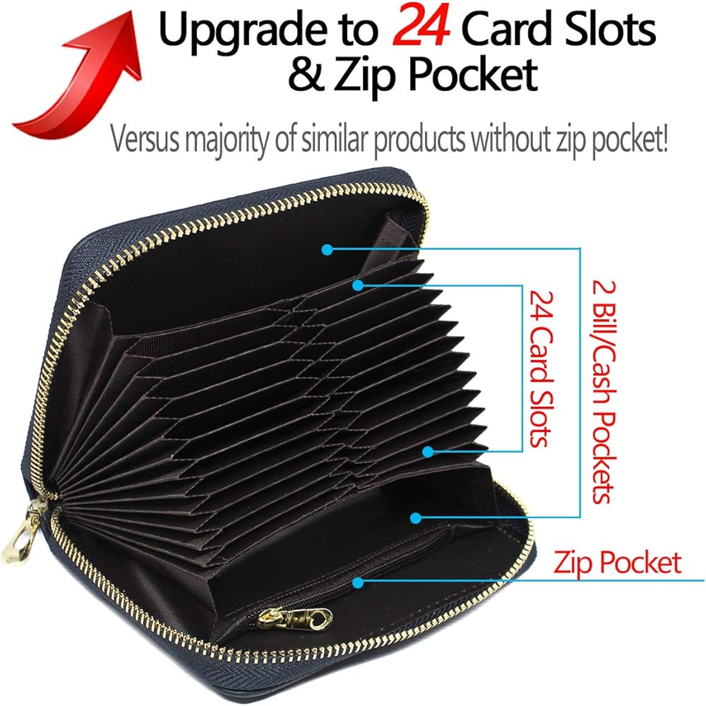 حافظة بطاقات الائتمان Imeetu RFID من الجلد بسحاب ومحفظة 24 فتحة للبطاقات للنساء
