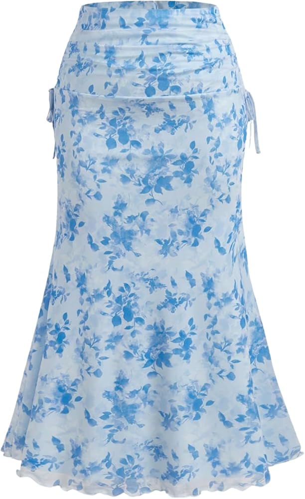 • Lettuce Edge, Mermaid Skirt, Bodycon Skirt, High Waist, Side Drawstring, Elegant Skirt, Dressy Skirt, Floral Pattern, Mesh, Skinny, Holiday Outfits