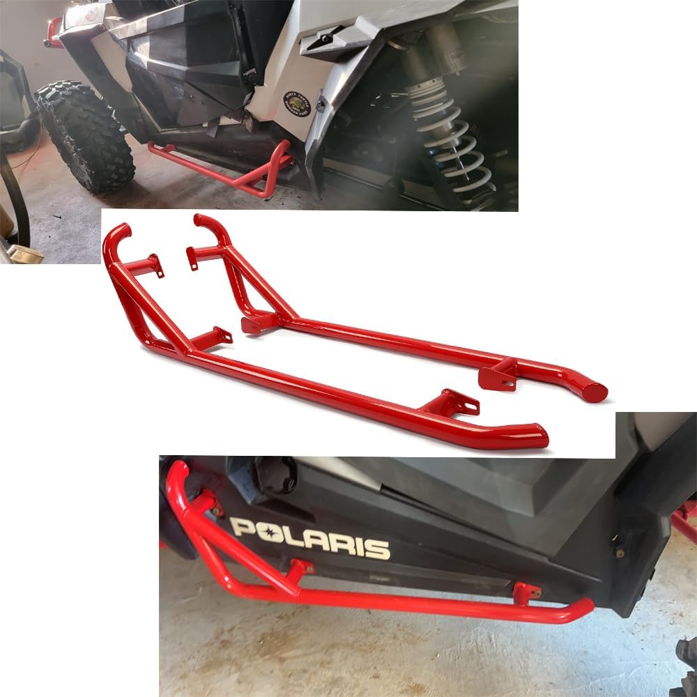 • Enhanced Design & Durability Constructed from heavy-duty steel, these red Nerf Bars are engineered for superior durability. Designed to protect your UTV's body from impacts with rocks, branches, and other obstacles. They also prevent wheel rubbing with other UTVs during tight maneuvers.