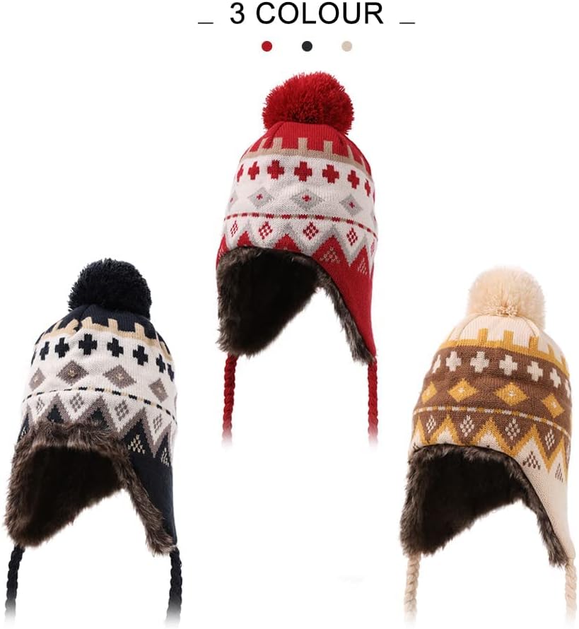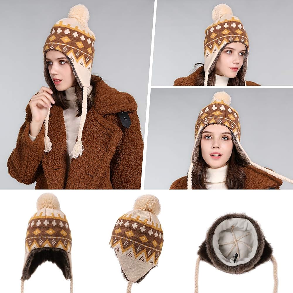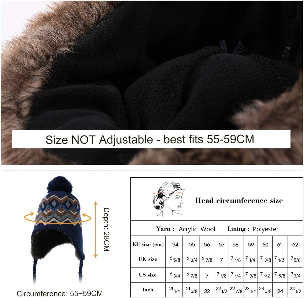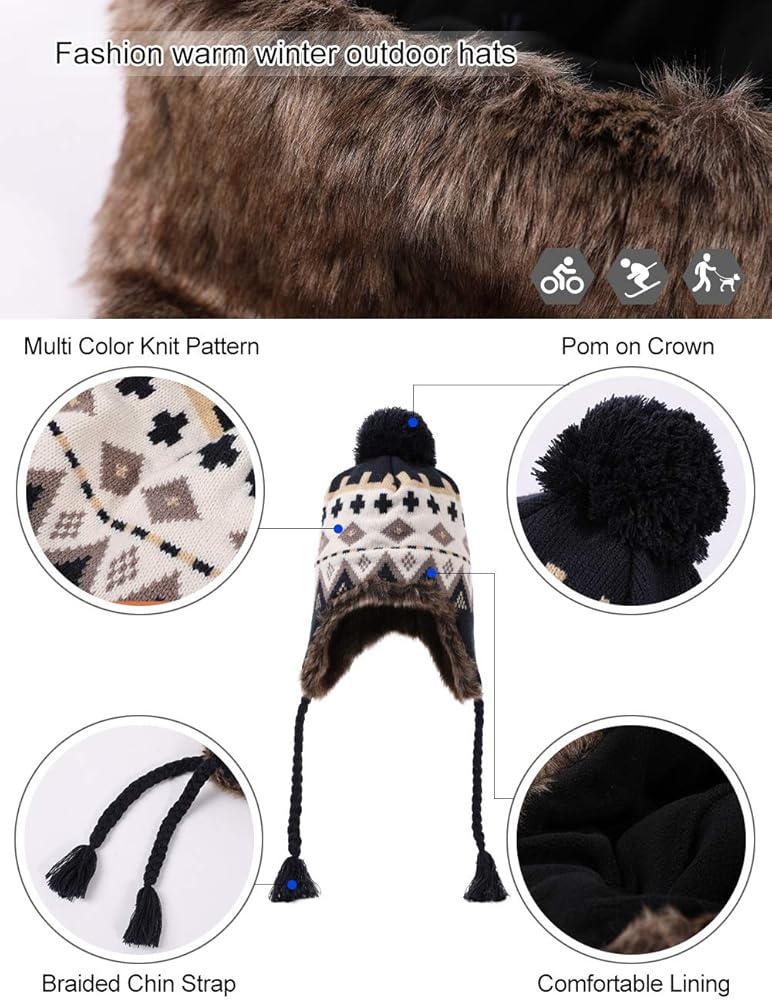 قبعة فرو محبوكة بغطاء للأذن - عملية رائعة للتزلج أو التزلج على الجليد أو المشي على الجليد أو صيد الثلج أو الصيد في الهواء الطلق أو التخييم أو ركوب الدراجات النارية؛ رائعة أيضًا كأزياء الصيادين/الجنود/الطيارين.