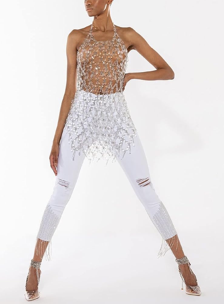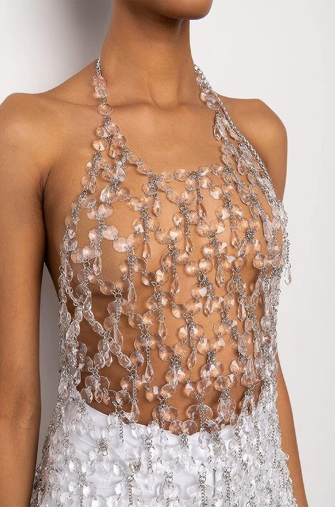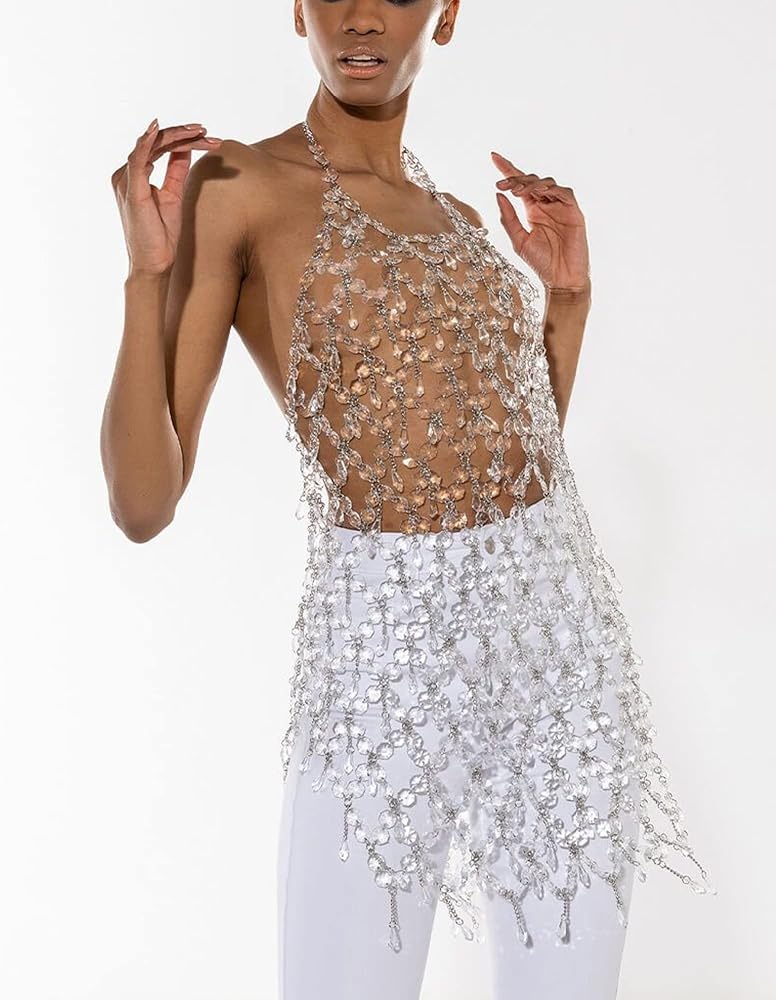 • التصميم البلوري المتلألئ: مزين بالبلورات الصافية المتلألئة ، فستان سلسلة الجسم هذا مثالي لإدلاء بيان في حفلات الزفاف والمناسبات الخاصة الأخرى