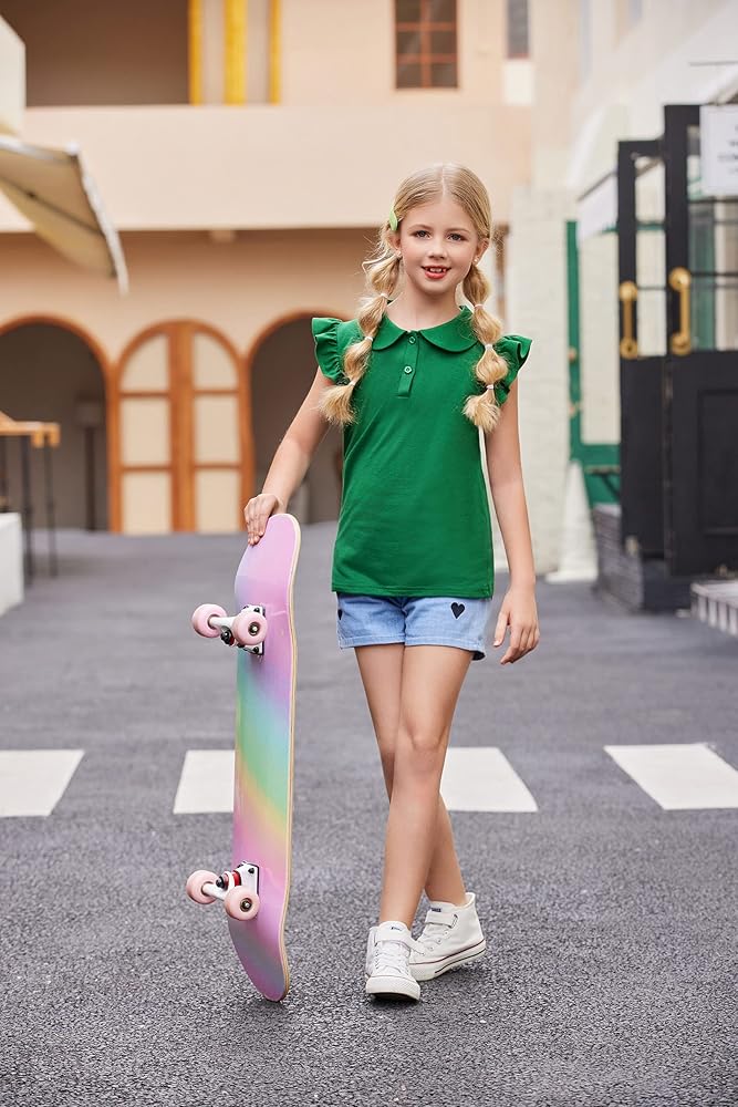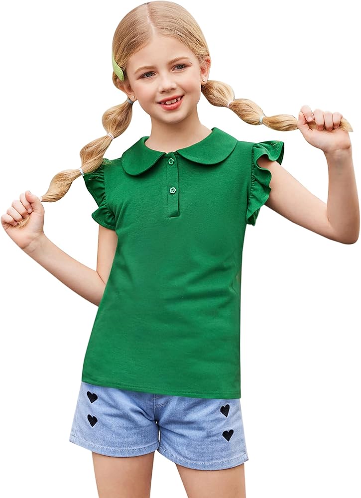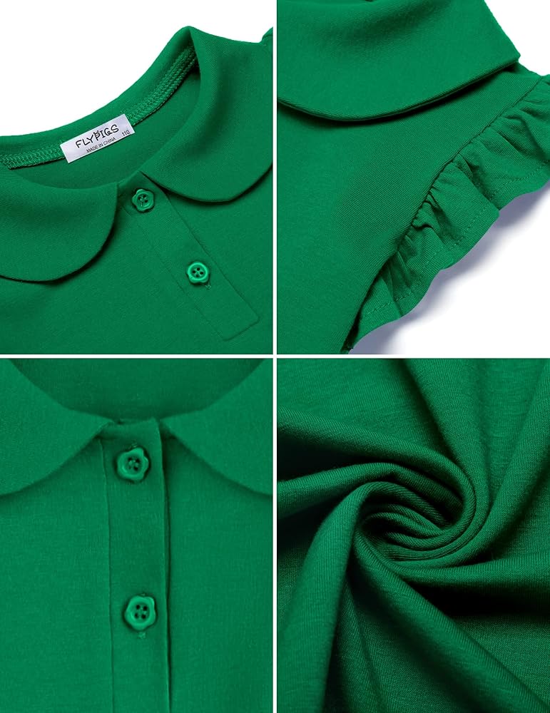 التصميم: تتميز قمصان البولو للفتيات بنمط كاجوال. أكمام مكشكشة، ياقة بيتر بان، رقبة دائرية، إغلاق بأزرار سفلية، لون ثابت، تي شيرت لطيف للفتيات. عصرية وعصرية، تضيف جمالاً إلى خزانة ملابسك.