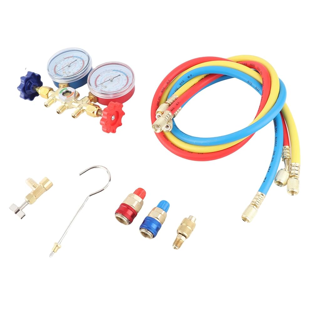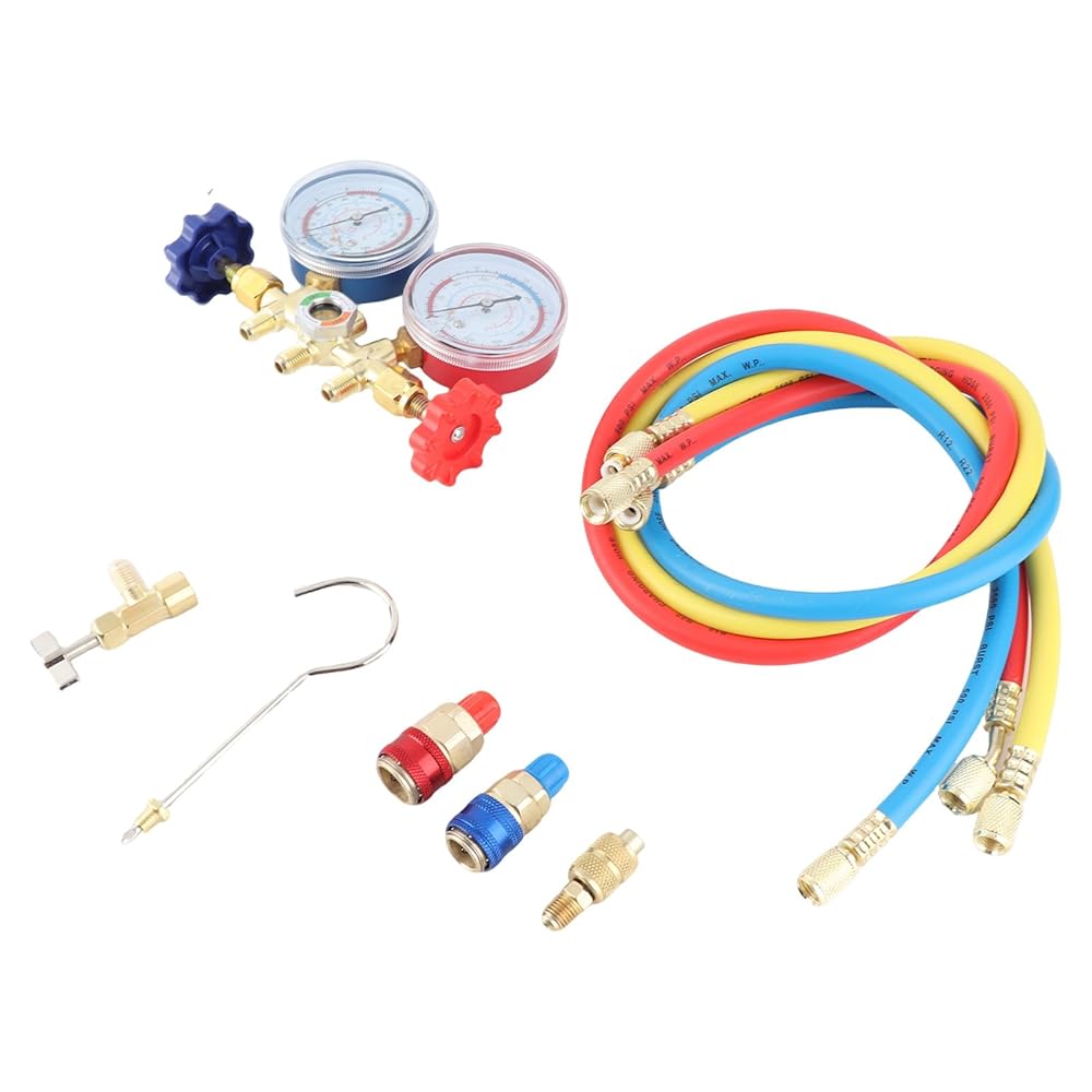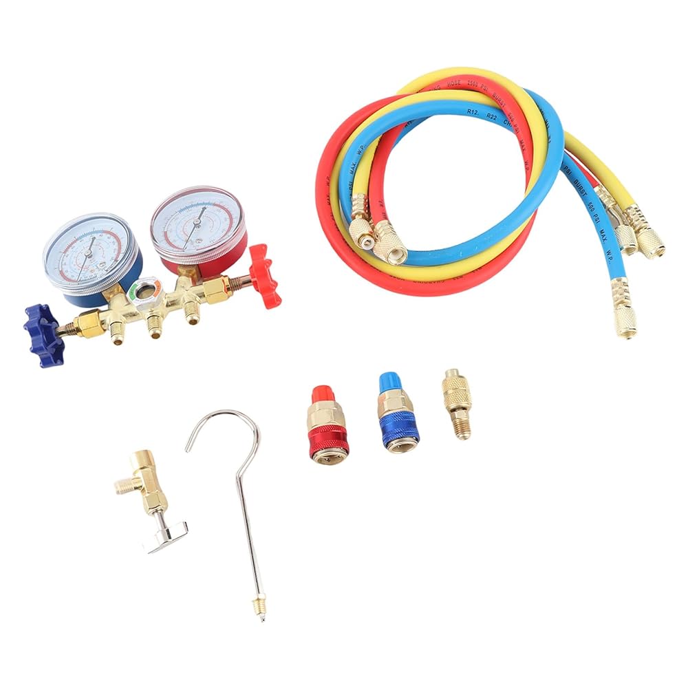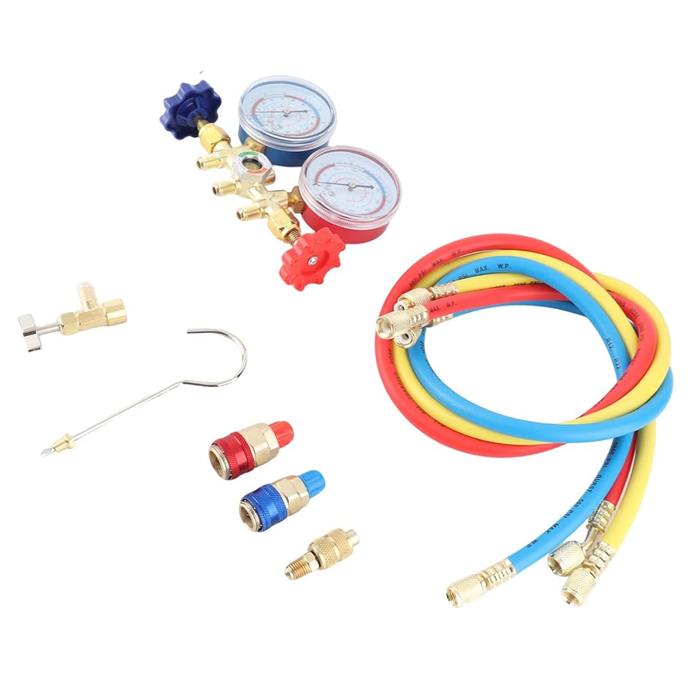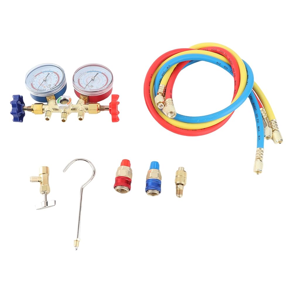 i for connection. b blue the to and Each. 【 Design】 - Crafted with an adhesive nylon hose measuring 3 x 0.9m, our refrigerant manifold gauge set guarantees exceptional durability. This material is inherently -, has low fluid , and can handle a maximum working pressure of 500 PSI. This ensures that your equipment can withstand demanding working conditions while providing a sealing performance, you can on your job without worrying about equipment f