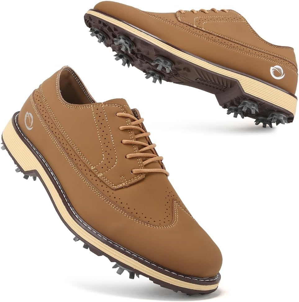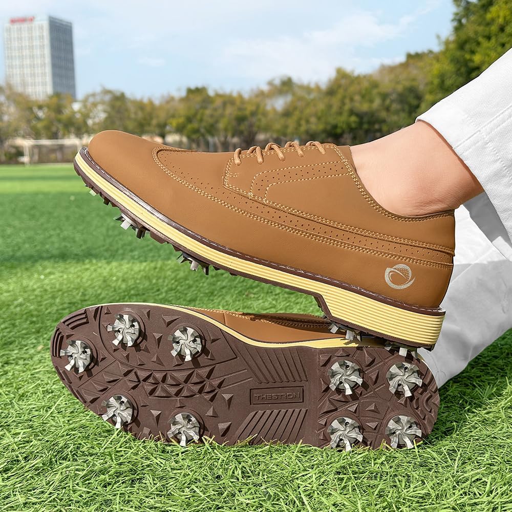 Upgrade your golf game with our premium Men's Professional Golf Shoes designed for performance and comfort on the course. These spikes golf shoes feature durable metal cleats that provide exceptional traction and stability during your swing, ensuring non slip performance even on wet or uneven terrain.