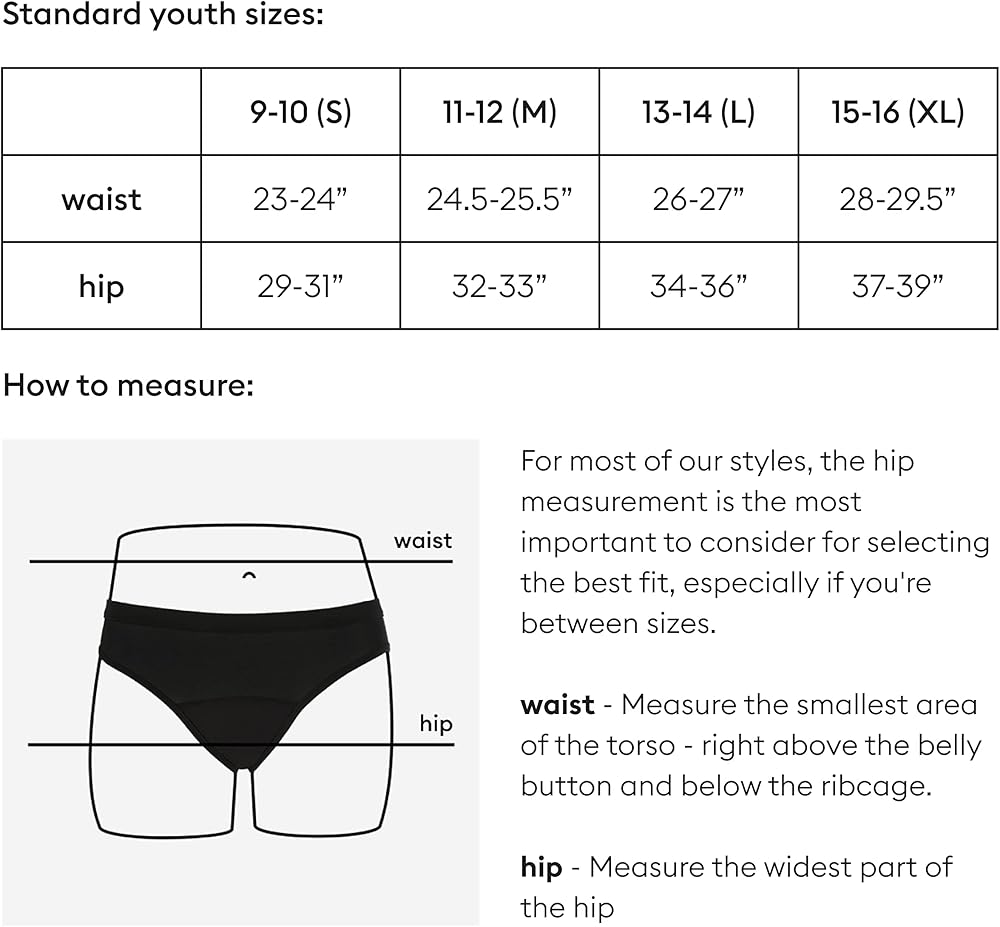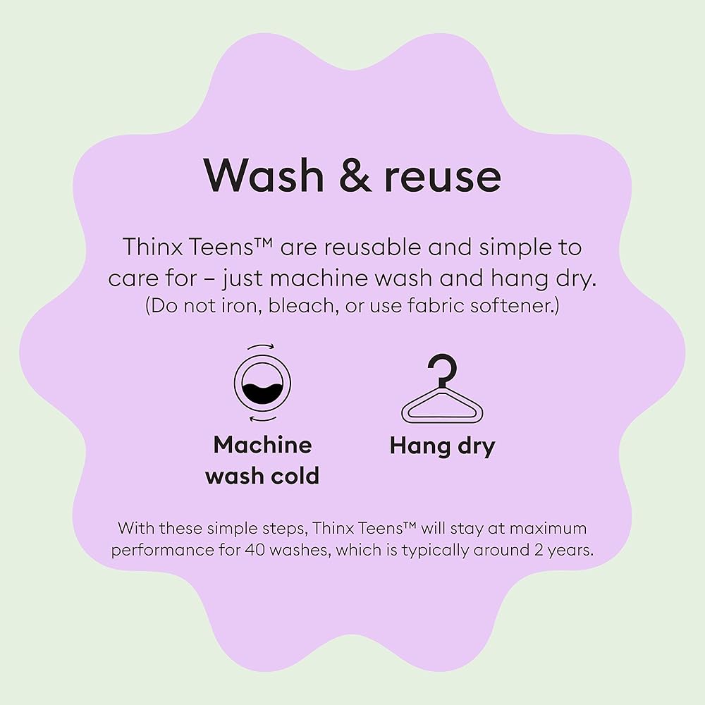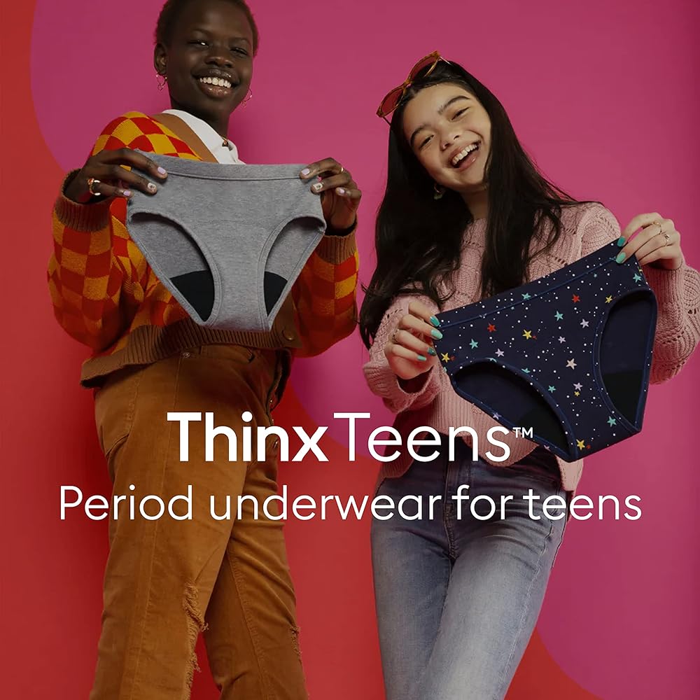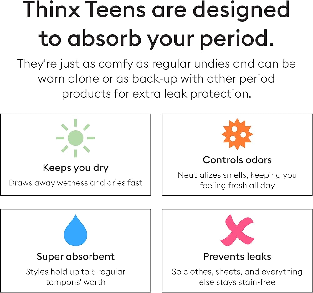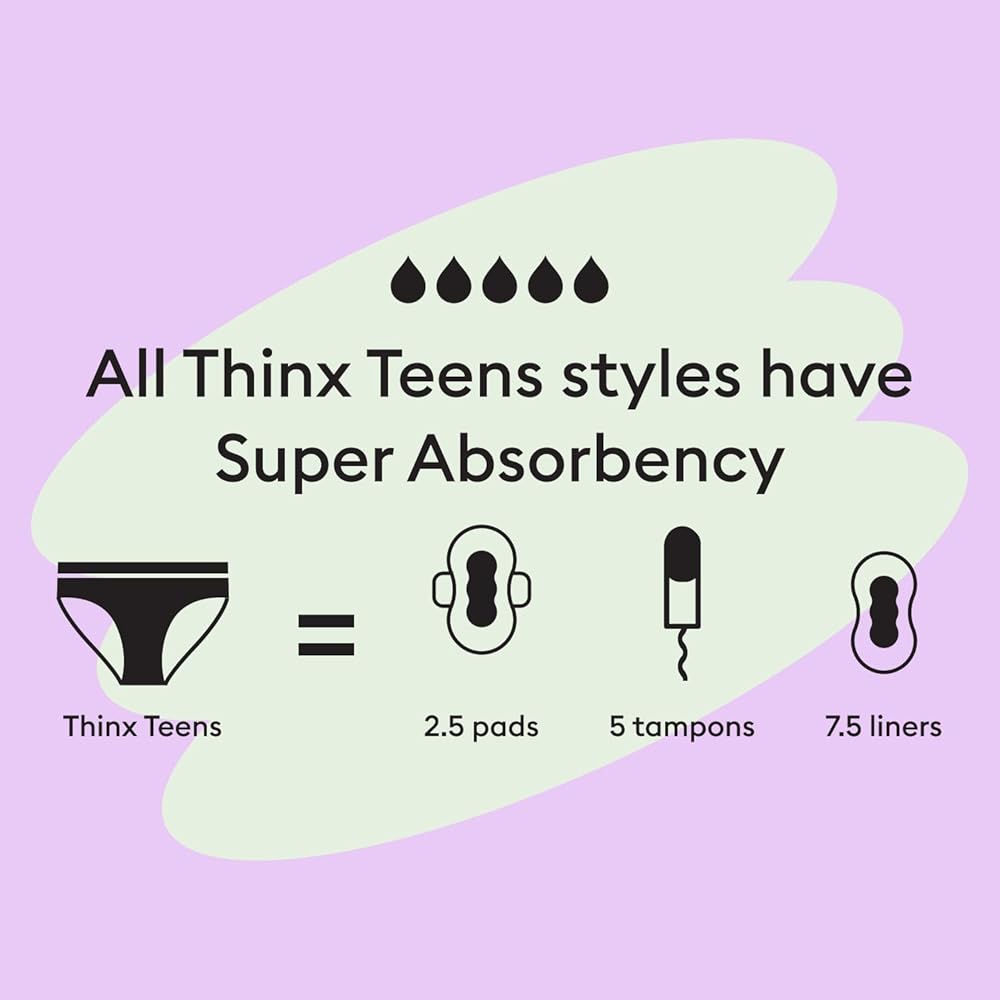 يوفر ثينكس تينز حماية من التسرب أثناء التنقل في المنزل أو طوال الليل أو في المدرسة؛ يقع الطراز القصير أسفل الورك العالي ويتمتع بتغطية خلفية أكبر من نمط البيكيني الخاص بنا