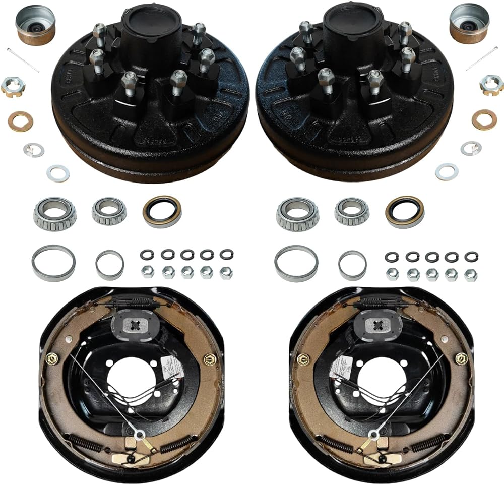 • 【Complete 7K Brake & Drum Kit – Full Axle Solution】Includes 2 × 12"x2" self-adjusting electric brake assemblies (LH & RH) and 2 × 8-lug brake drums with 1/2"-20 studs and lug nuts—perfect for upgrading or replacing an entire 7,000 lb trailer axle.