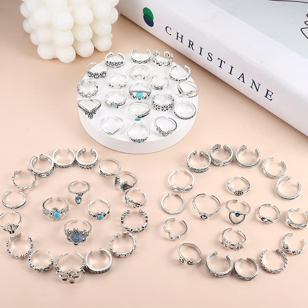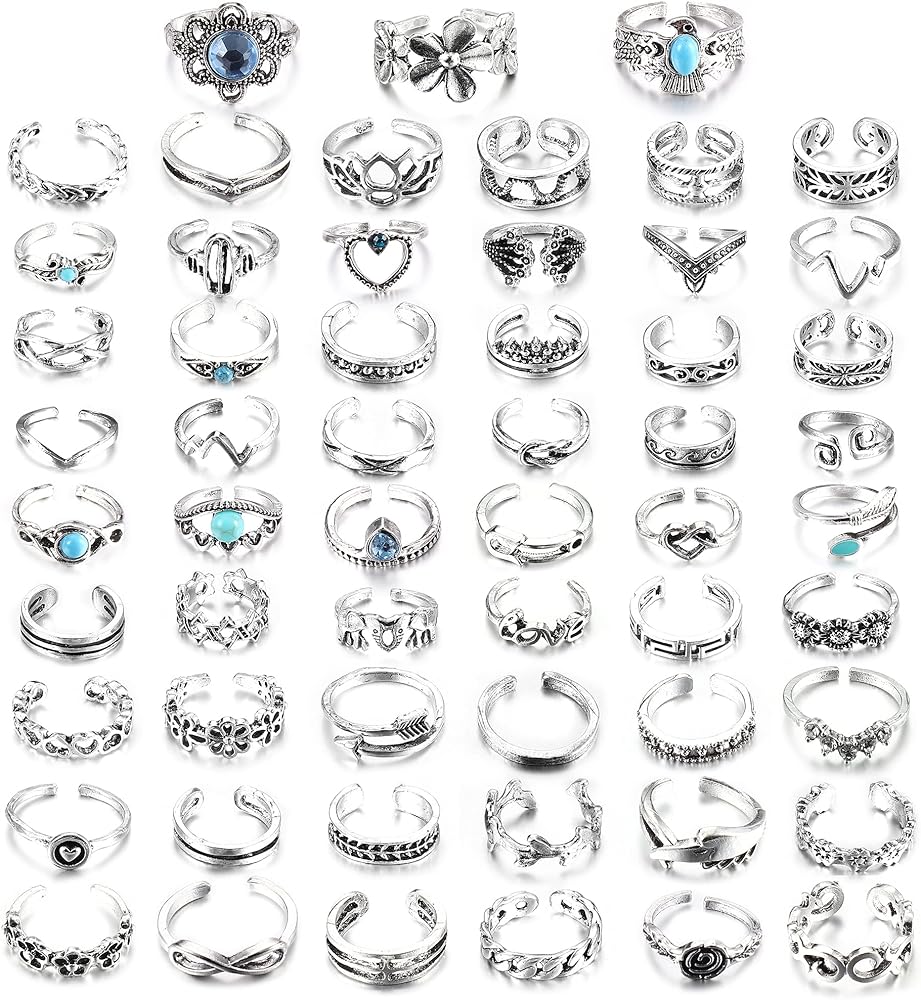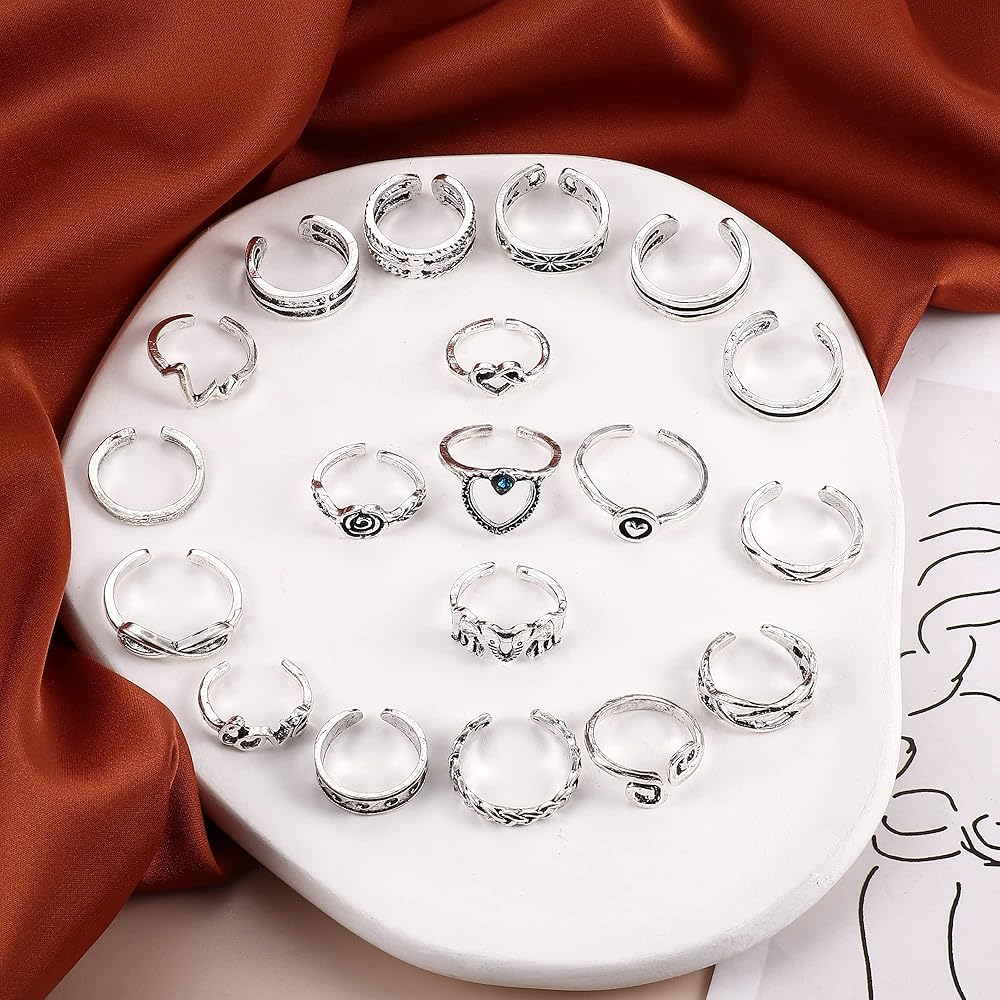 • ➤ مجموعة خواتم أصابع القدم القابلة للتعديل - 57 قطعة من خواتم أصابع القدم مطلية باللون الأبيض مع صندوق. أنماط فاريوس خواتم أصابع القدم الفضية يمكن أن تلبي ملابسك اليومية المختلفة. سعر معقول وجودة متقنة. خواتم أصابع القدم العتيقة وحلقات أصابع القدم بوهو للتعبير عن شخصيتك وإبراز جمالك.