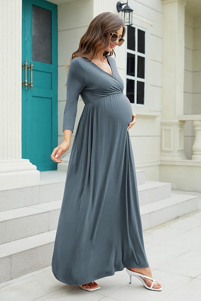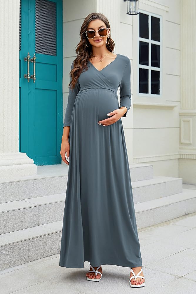 فستان حمل طويل للسيدات، مصنوع من 95% رايون + 5% ألياف لدنة، ناعم جدًا ومطاط، صديق للبشرة، يناسب الحامل تمامًا ويمكن ارتداؤه أيضًا بعد الطفل أيضًا!