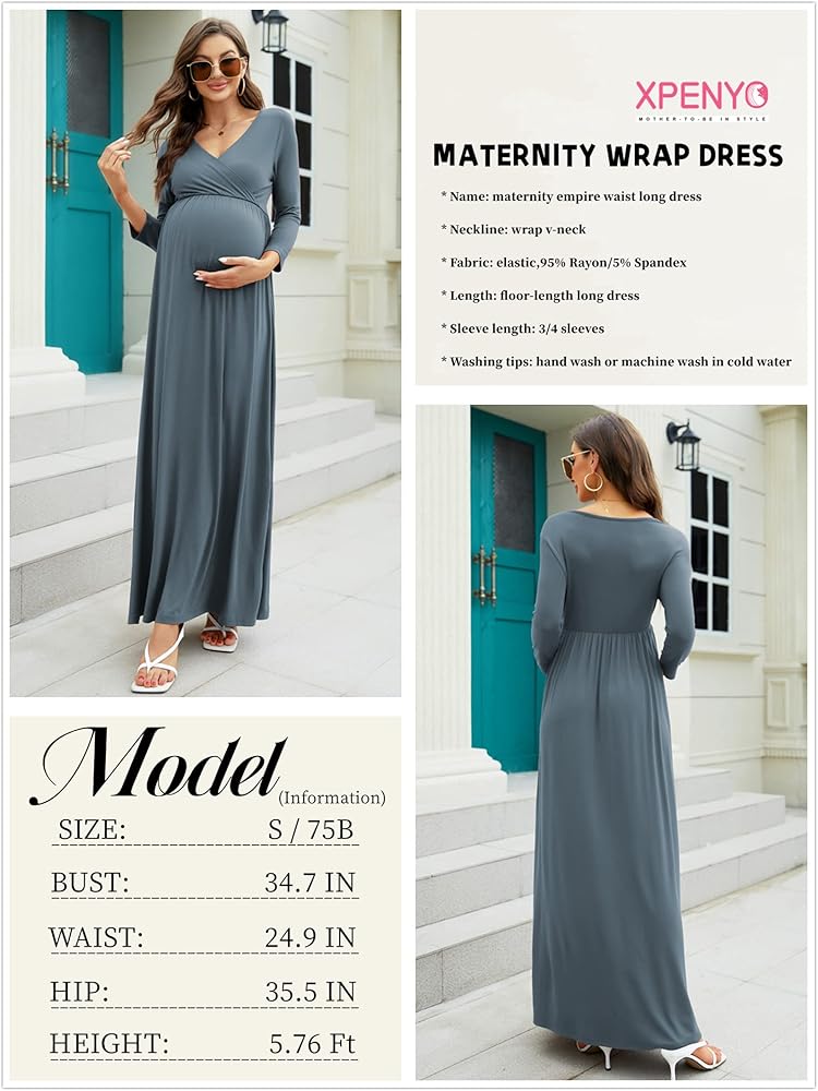فستان حمل أساسي مكشكش بسيط ذو ثلاثة أرباع كم، يتميز بياقة متقاطعة على شكل حرف V، وأكمام 3/4، وحزام مرن أسفل الصدر، ينثني بشكل لطيف، ولا يكون شفافًا أبدًا. مناسب لجميع المواسم، سواء الربيع والصيف، أو الخريف والشتاء، يجب اقتناؤه في خزانة ملابسك، فساتين ملفوفة أنيقة للأم العصرية.