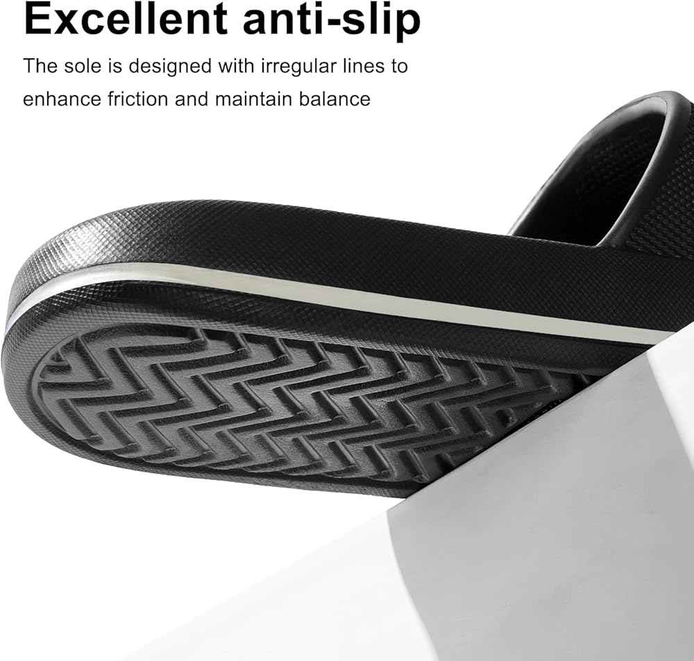 • 【النعل المتقدم المضاد للانزلاق】 يضمن نمط المداسب غير المنتظم العميق أقصى قدر من القبضة على الأسطح الرطبة ، مما يجعلها مثالية للحمامات ، وحمامات السباحة ، والساونا ، والأرضيات الزلقة. المشي بثقة مع تعزيز الاستقرار والمتانة.