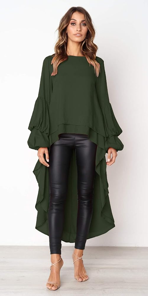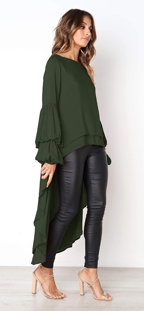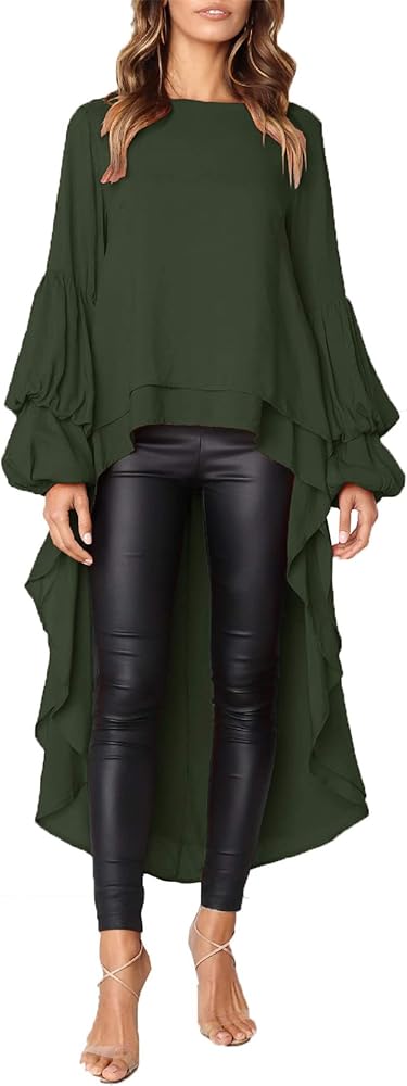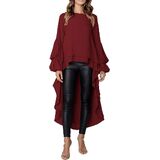 Prettygarden الفانوس للنساء الطويل الأكمام حول الرقبة عالية منخفضة منخفضة غير منتظمة تنحن