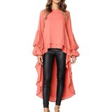 • تصميم بحاشية مطوية مرتفعة ومنخفضة، شكل جسمك بشكل مثالي. يضيف الكم الطويل المكشكش لمسة من الأناقة الأنثوية، أنيقة وخاصة. المادة خفيفة الوزن انسيابية للغاية مما يجعلها مثالية للارتداء في أي مناسبة خاصة عند الخروج
