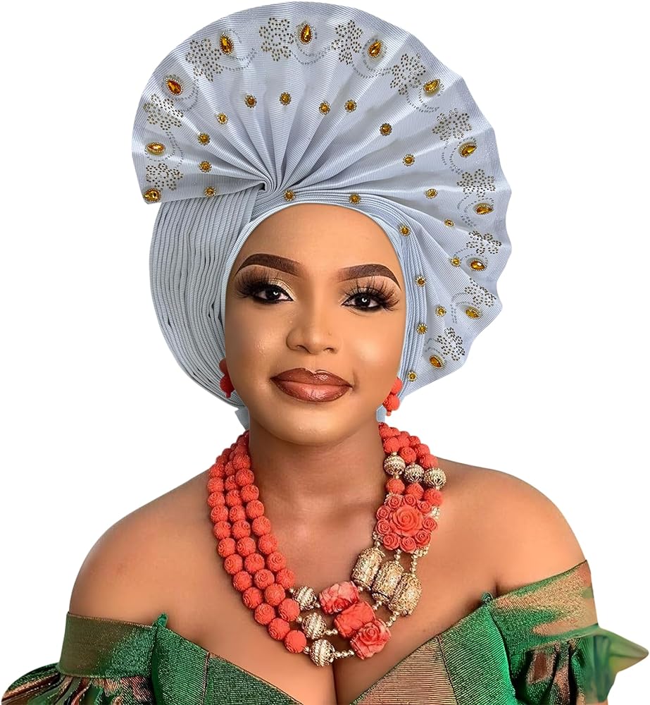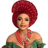 أغطية الرأس النيجيرية للنساء الحجاب الأفريقي ، عقال رأس الجيل ، التفاف اليد بالخرز - مصنوعة لحفلات الزفاف أحداث الأحداث in Kuwait
