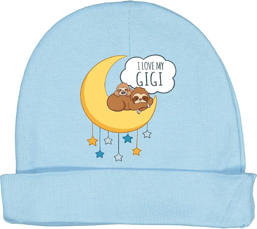 • Welcome your new little one with our I Love My Gigi Baby Beanie Hat featuring a cute sloth family nestled in the night sky.