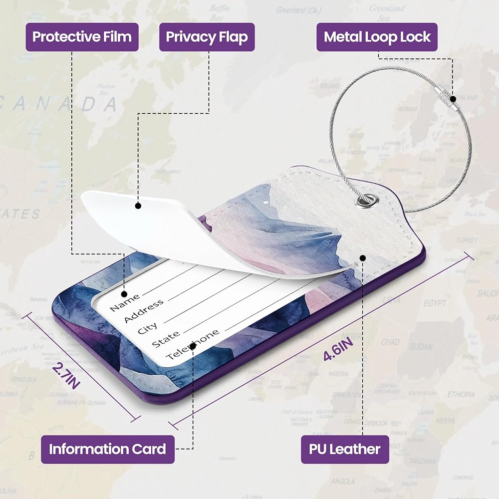 تصميم متين وآمن: مصنوع من جلد PU عالي الجودة مع حواف ناعمة ومضادة للضرب وتفاصيل مخيط يدويًا ، تم تصميم علامة الأمتعة هذه لتستمر. تحافظ حلقة الصلب القوية والقابلة للإزالة على إرفاق العلامة بإحكام - لا تقلق بشأنها أثناء السفر.