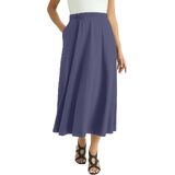 This A-line skirt is comfy, casual and makes effortless outfits every time. The relaxed fit and pull-on design make them perfect for everyday wear. A-line silhouette 32" length Cotton/polyester Elasticized waistband Side slash pockets. Machine wash Imported