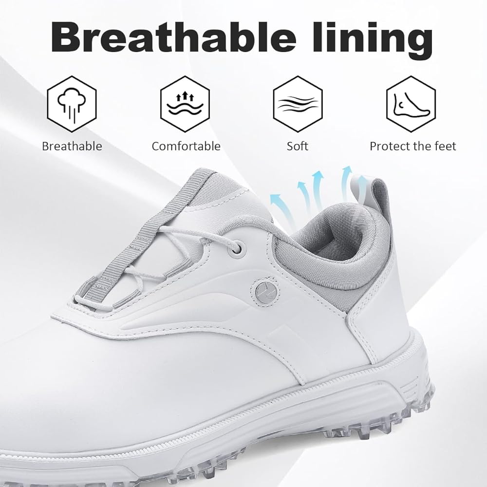 - 【الاستقرار الفريد】 تم تصميم أحذية الجولف هذه بشكل فريد لتوفير غلاف متفوق حول القدم ويعزز ثباتك مع كل أرجوحة.