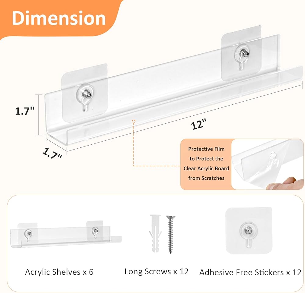 أرفف غير واضحة: أثناء عملية التغليف ، نلقي على فيلم وقائي على المنتج لحماية لوحة الأكريليك الواضحة من الخدوش. عند الاستخدام ، يمكننا تمزيق فيلم الحماية للحصول على رف فينيل واضح