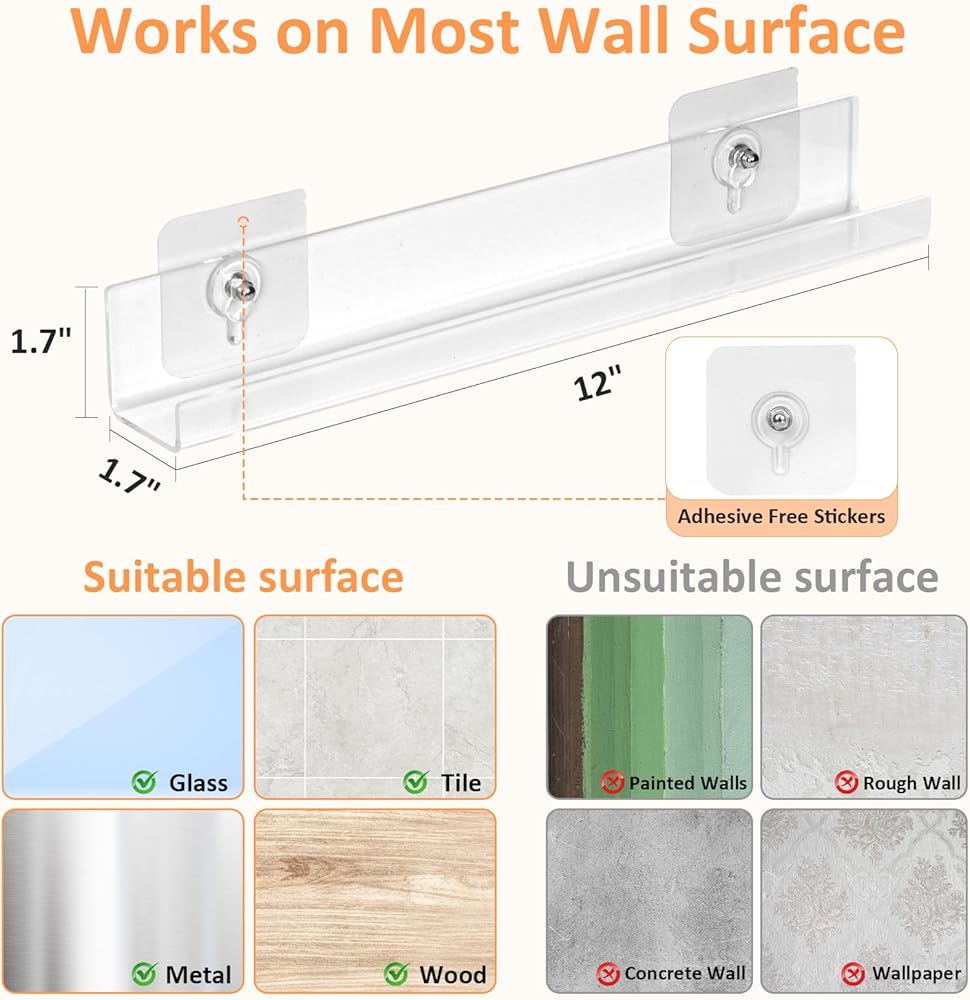 خيارات تخزين متعددة: يقيس الرف العائم 12 "× 1.7" × 1.7 "ولديها حزم 6/8/12 متوفرة للاختيار ، الحواف المرتفعة تمنع العناصر من السقوط. يمكن استخدامها للتخزين المبوبة في غرف المعيشة وغرف النوم والحمامات