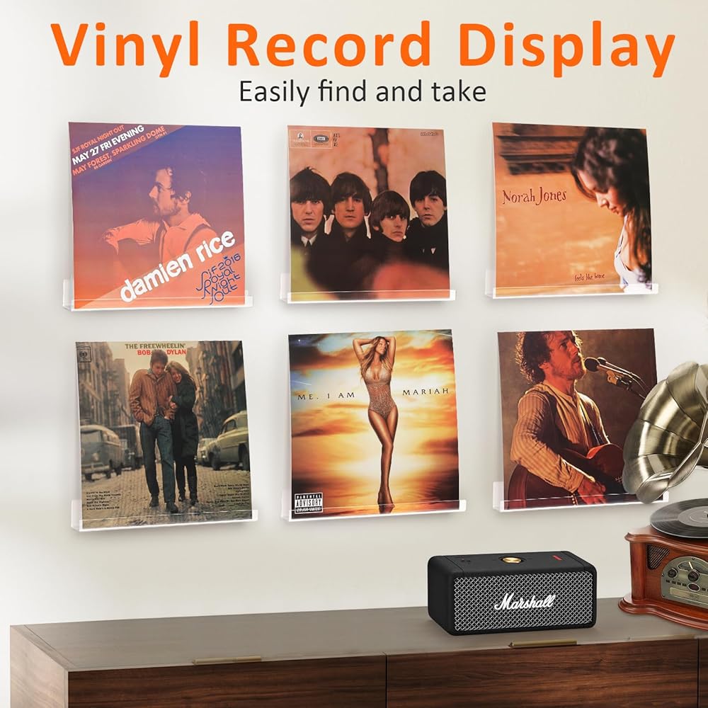 تخزين وعرض سجل الفينيل: عرض السجلات على حامل سجل الأكريليك الواضح ، يمكنك بسهولة العثور على السجلات والتقاطها. الاستفادة الكاملة من مساحة الحائط الخاصة بك لإظهار مجموعتك وزين غرفتك