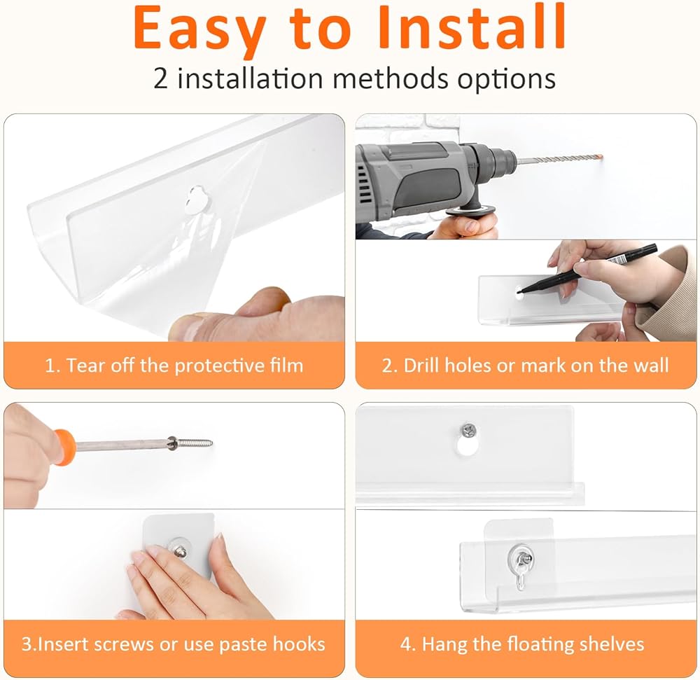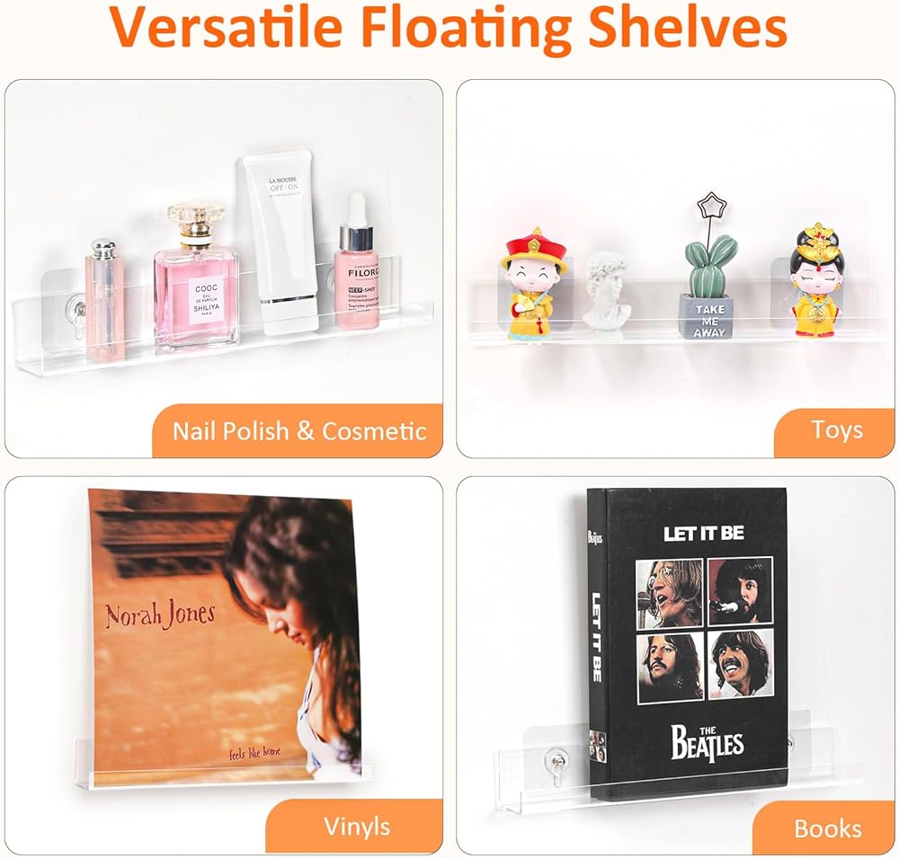 سهلة التثبيت: تم تصميم ثقوب المسمار من الأرفف العائمة ليتم توسيعها وسميكة لضمان عدم تصدعها بسهولة أثناء التثبيت ، وهي مزودة بملصقات ومسامير متزايدة. ملاحظة: الملصقات الخالية من المواد اللاصقة غير قابلة للتطبيق الجدران المرسومة والجدار الخشن والجدار الخرساني وخلفية