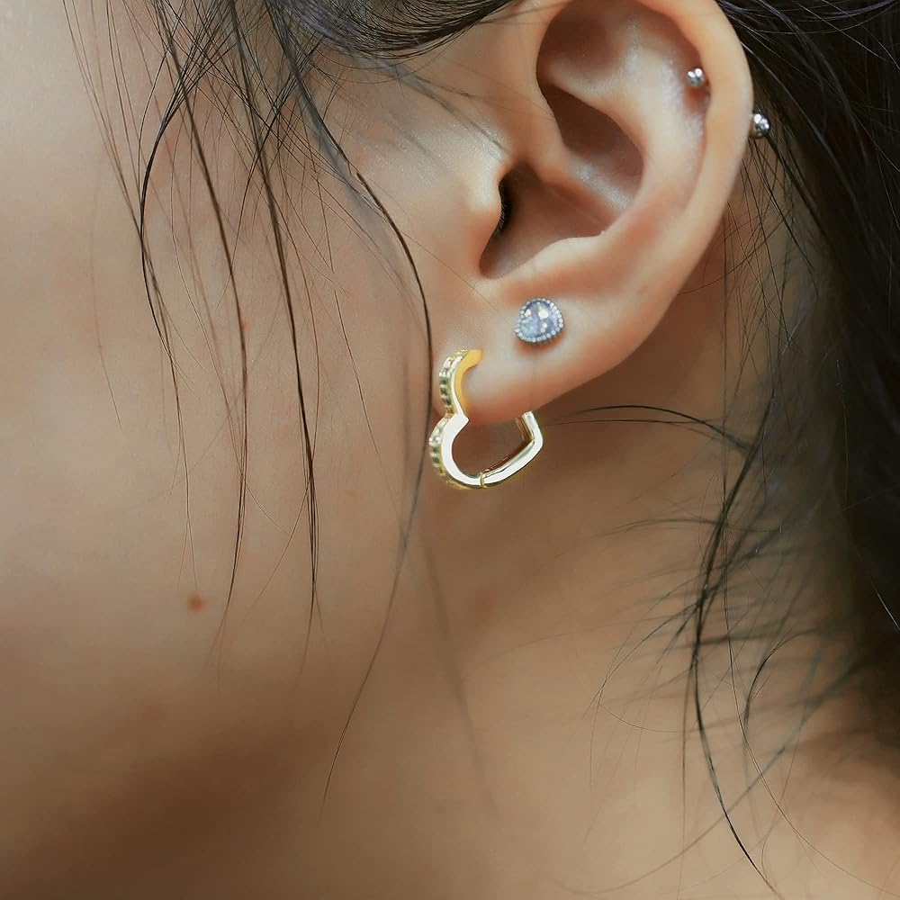 أقراط دائرية صغيرة للبنات: القطر الخارجي 16 ملم، على شكل قلب يبدو لطيفًا للغاية. مشابك الأقراط مصنوعة من الفضة الإسترلينية 925، لذا فهي ناعمة جدًا وسهلة التشوه، ولكنها أيضًا يمكن تعديلها بسهولة للإغلاق.