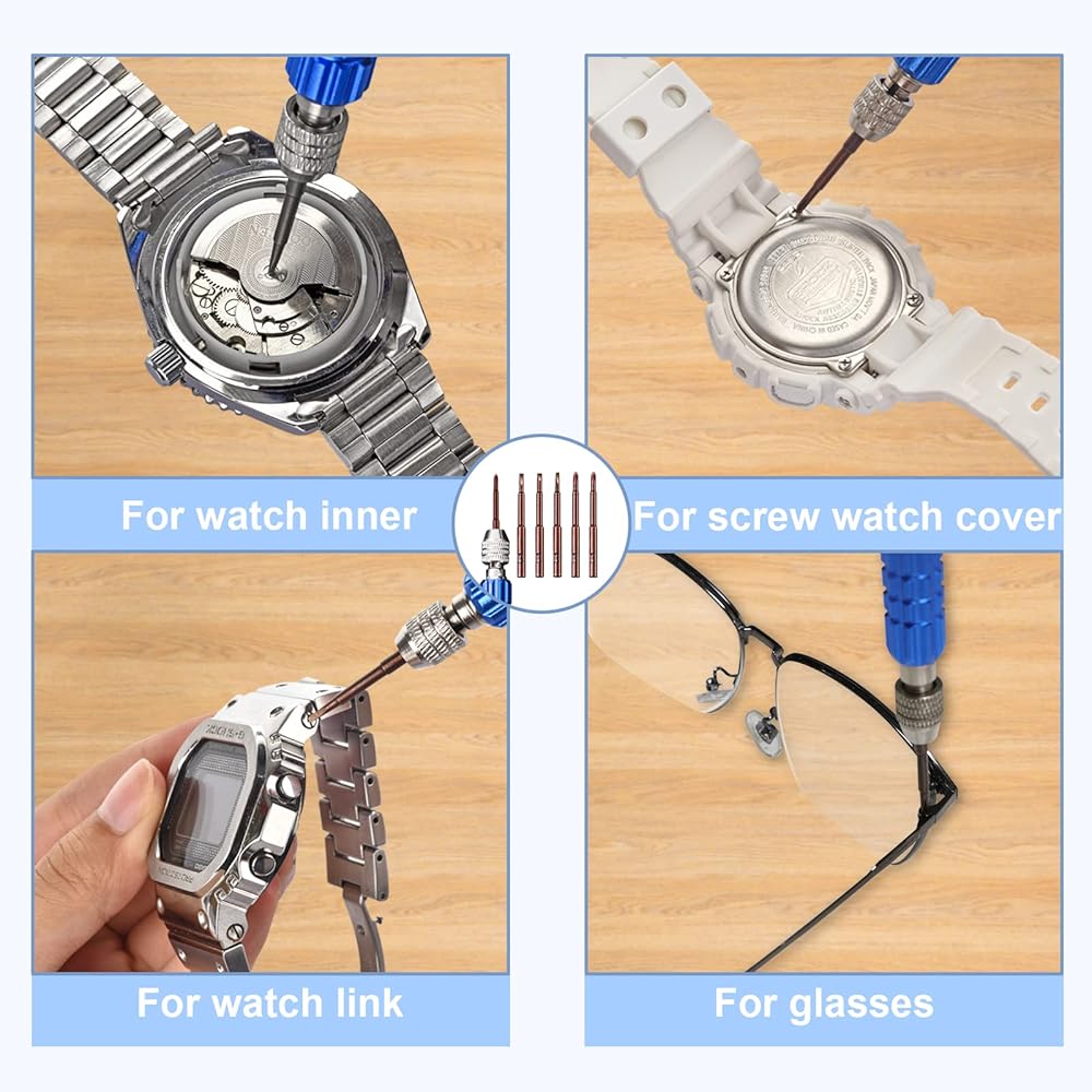 ⌚【جودة عالية ودقة عالية】جميع الأدوات المعدنية لهذه الأداة مصنوعة من خليط معدني عالي الجودة، وعملية التبريد بدرجة الحرارة العالية تجعل المعدن مرنًا وليس من السهل إتلافه. هناك 5 رؤوس مفك براغي، فيليبس (1.5، 1.8 ملم)، رأس مسطح (1.0، 1.2، 1.5 ملم)، مسامير التثبيت الدقيقة وعالية الطاقة غير زلقة، وتحمي ساعتك من الخدش.