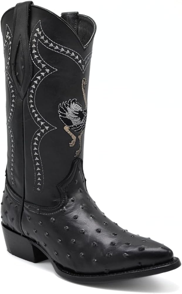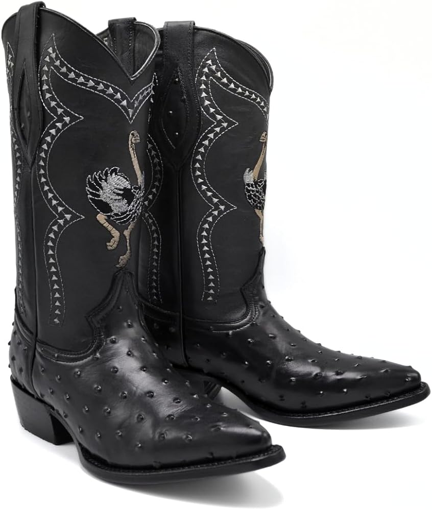 Step into style and comfort with these genuine leather ostrich cowboy boots, perfect for the rodeo or everyday wear. Crafted from premium ostrich leather, these boots offer a distinctive texture and long-lasting durability. The handcrafted design features detailed embroidery along the shaft, adding a touch of Western flair, while the cushioned insole ensures all-day comfort. With a durable rubber outsole and a sturdy heel, these boots are built to handle tough terrain, making them perfect for ranch work, riding, or a night out. Elevate your Western wardrobe with these authentic ostrich cowboy boots.