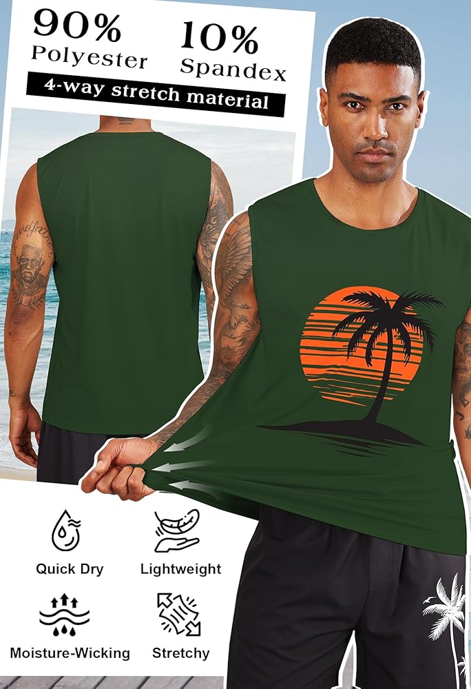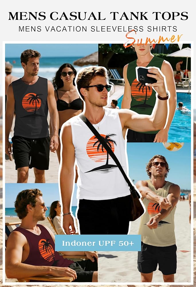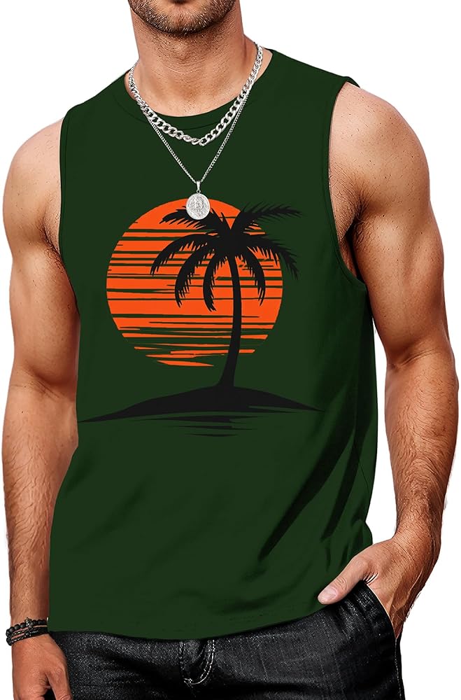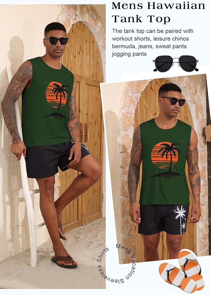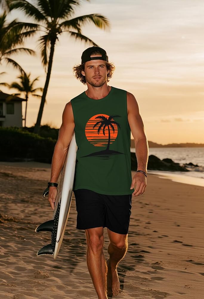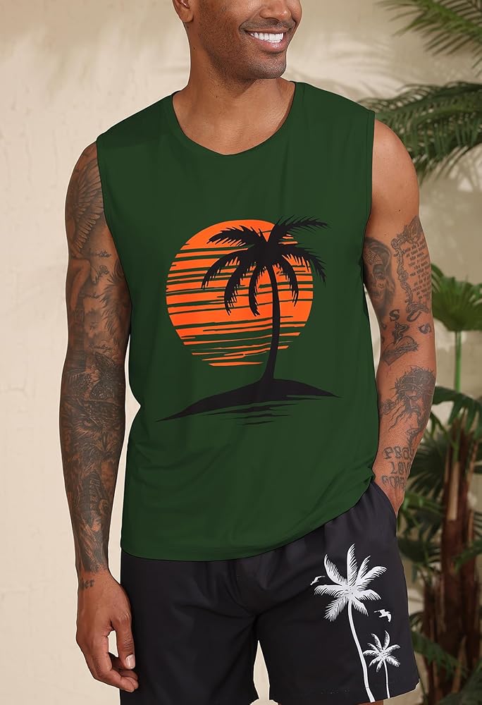 • القميص الأساسي اللطيف للرجال البارد والنسفيون بلا أكمام: موضوعات متدرجة وطباعة نابضة بالحياة من غروب الشمس الذهبي الذي يذوب في نخيل جوز الهند المظلم ، مما يثير غنى أرجوحة ونسمات المحيطات ، وربطها مع شورتات الكتان أو جذوع السباحة والصنادل في عطلة فورية