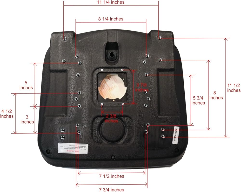 Features - Heavy-duty vinyl covering. Vacuum formed waterproof vinyl. Ergonomic cushions to ensure operator comfort. Durable blow molded plastic frame is corrosion resistant. Central drain hole prevents water build-up. 19" high-back seat which will replace both original 16" and 19" high-back seats. Multiple mounting patterns